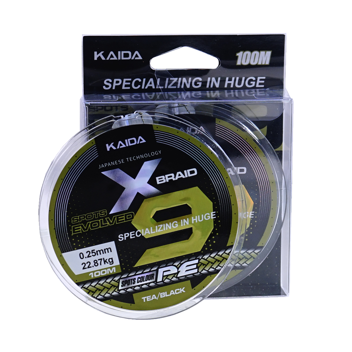 Шнур Kaida Spots Evolved X9 2D 100м 0,25мм 22,87кг черный, зеленый