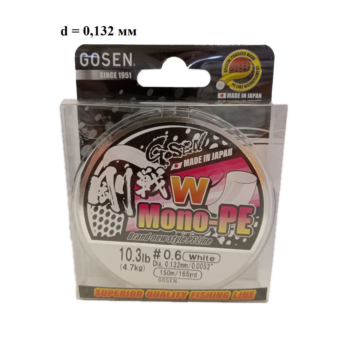 Шнур Gosen W Mono PE 150м 0,132мм 4,8кг белый (0.6PE)