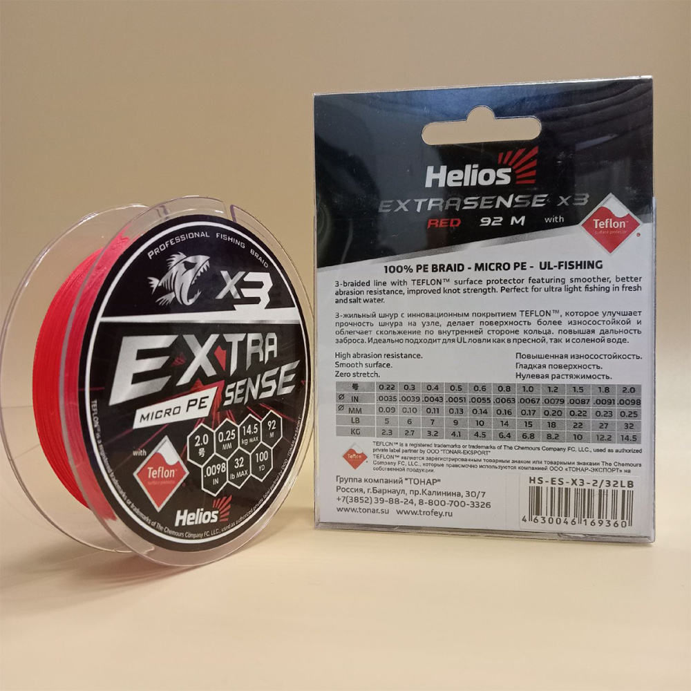Шнур Helios Extrasense X3 PE 92м 0,10мм 2,7кг красный (0.3PE/6lb) (HS-ES-X3-0.3/6LB)