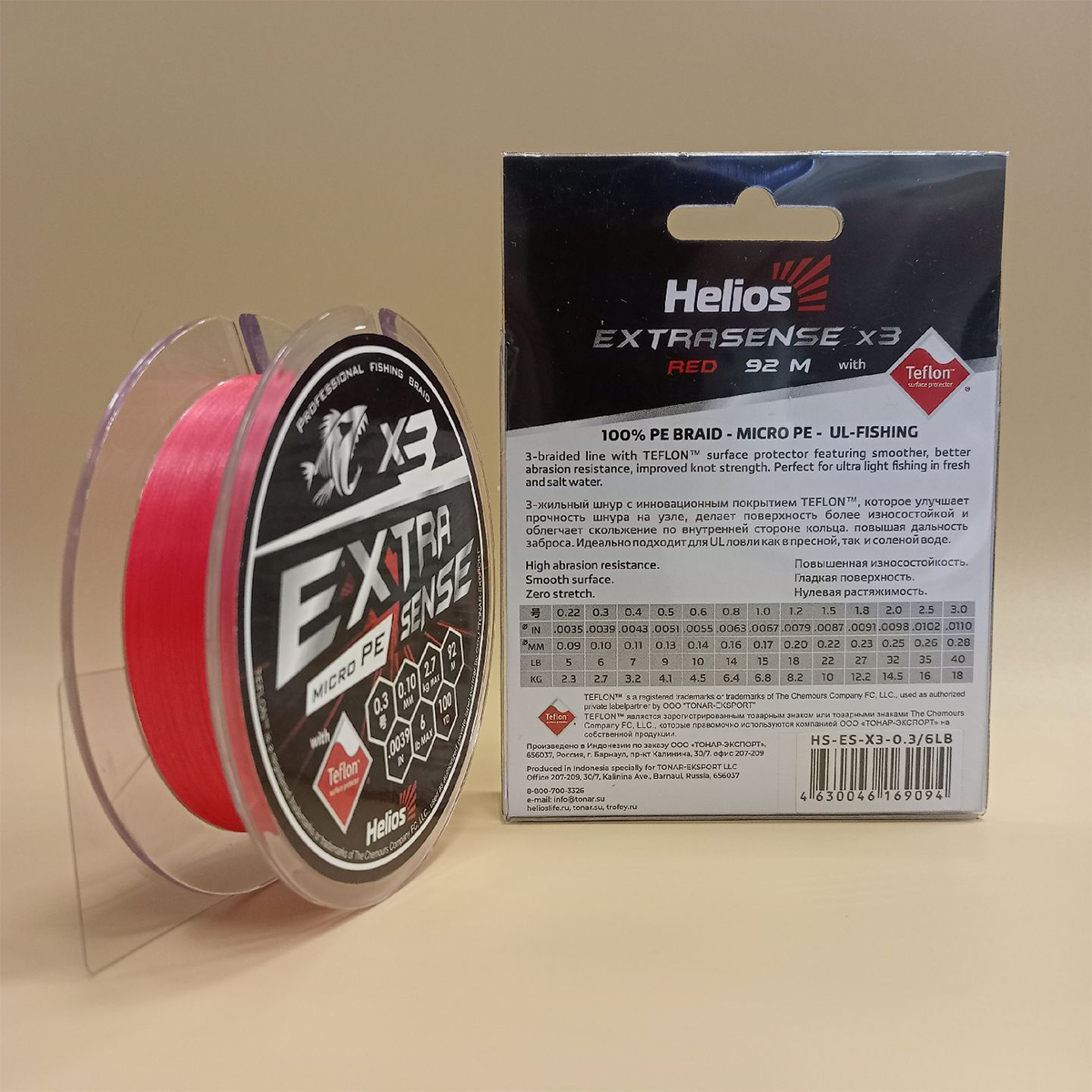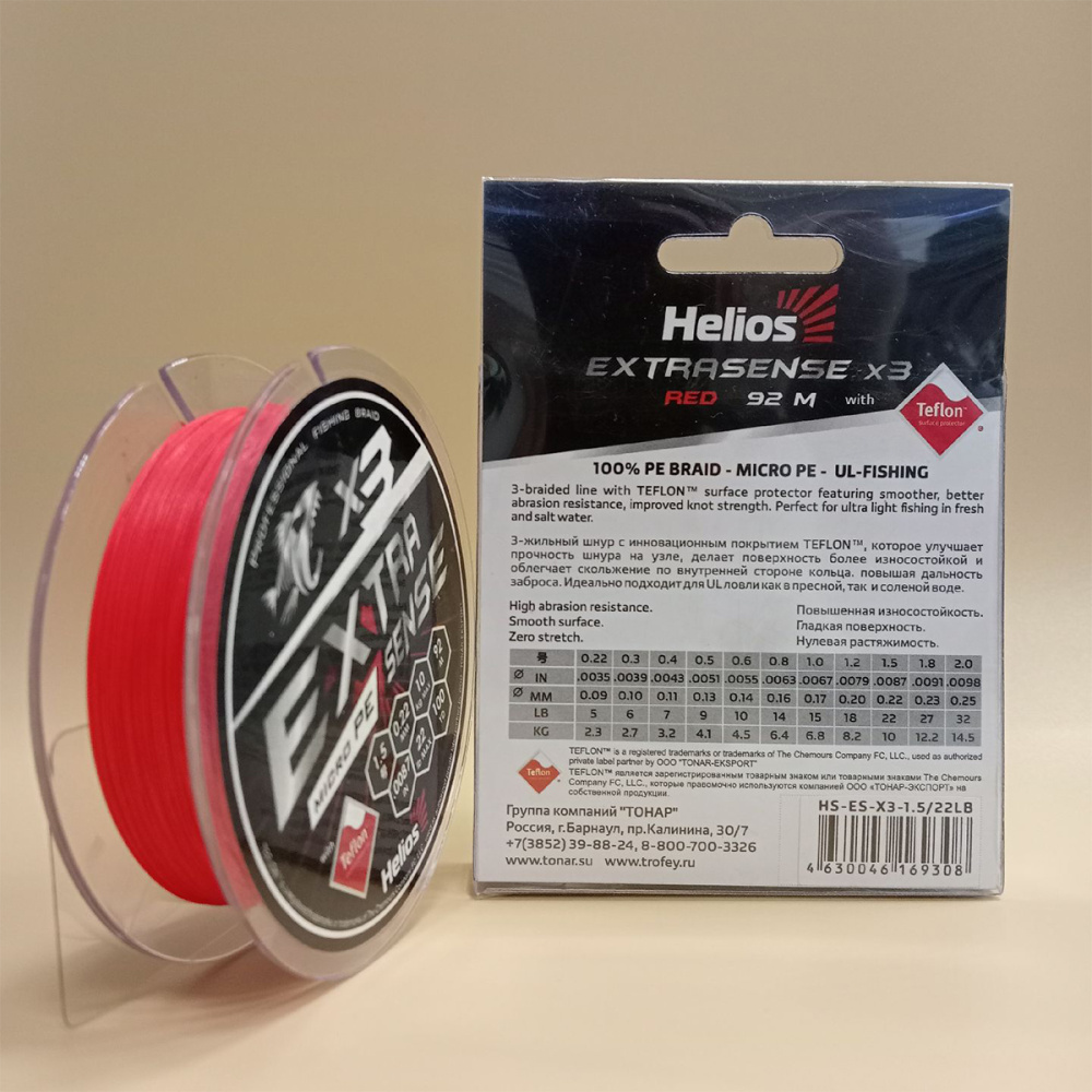 Шнур Helios Extrasense X3 PE 92м 0,10мм 2,7кг красный (0.3PE/6lb) (HS-ES-X3-0.3/6LB)