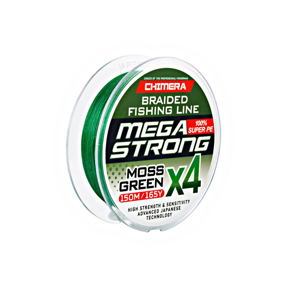 Химера мегастронг это шнур четырехжильного плотного плетения из износостойкого материала ПЕ. В линейке CHIMERA MEGASTRONG Moss Green X4 150m подобраны самые востребованные диаметры и их порядка десятка. И любители ловли на легкие снасти и те, кто нацелен на трофей обязательно подберут шнур с требуемыми характеристиками.