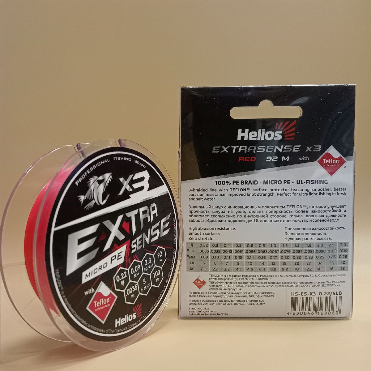 Шнур Helios Extrasense X3 PE 92м 0,09мм 2,3кг красный (0.22PE/5lb) (HS-ES-X3-0.22/5LB)