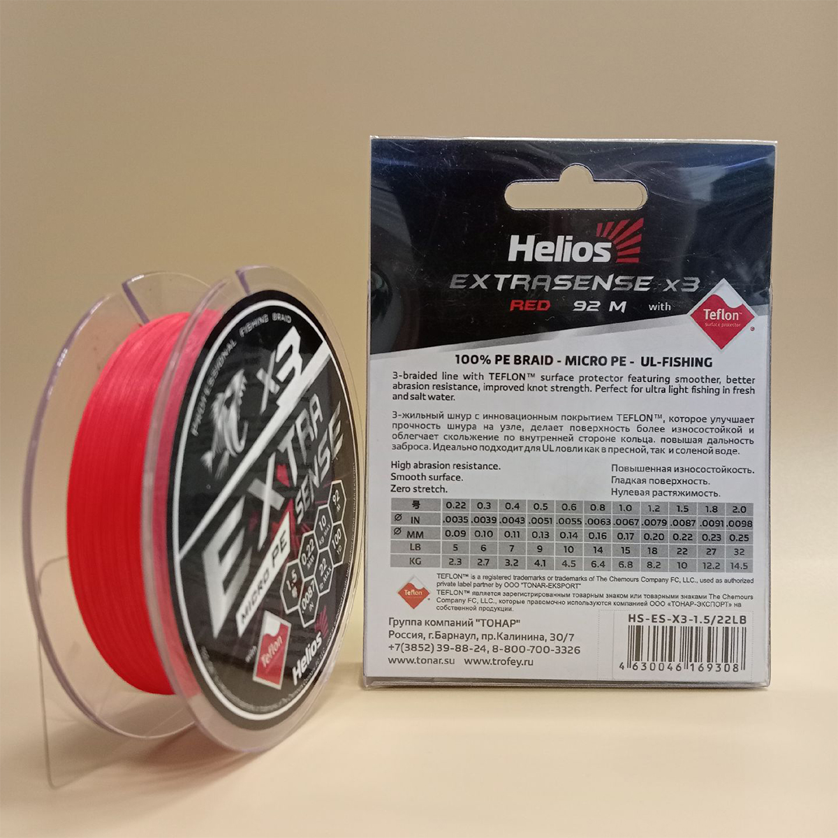Шнур Helios Extrasense X3 PE 92м 0,22мм 10кг красный (1.5PE/22lb) (HS-ES-X3-1.5/22LB)