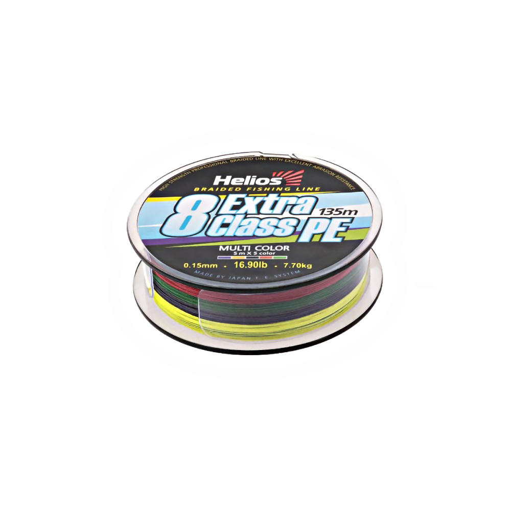 Шнур Helios Extra Class 8 PE Braid 135м 0,15мм 7,7кг мультиколор (HS-8PEM-15/135 M)