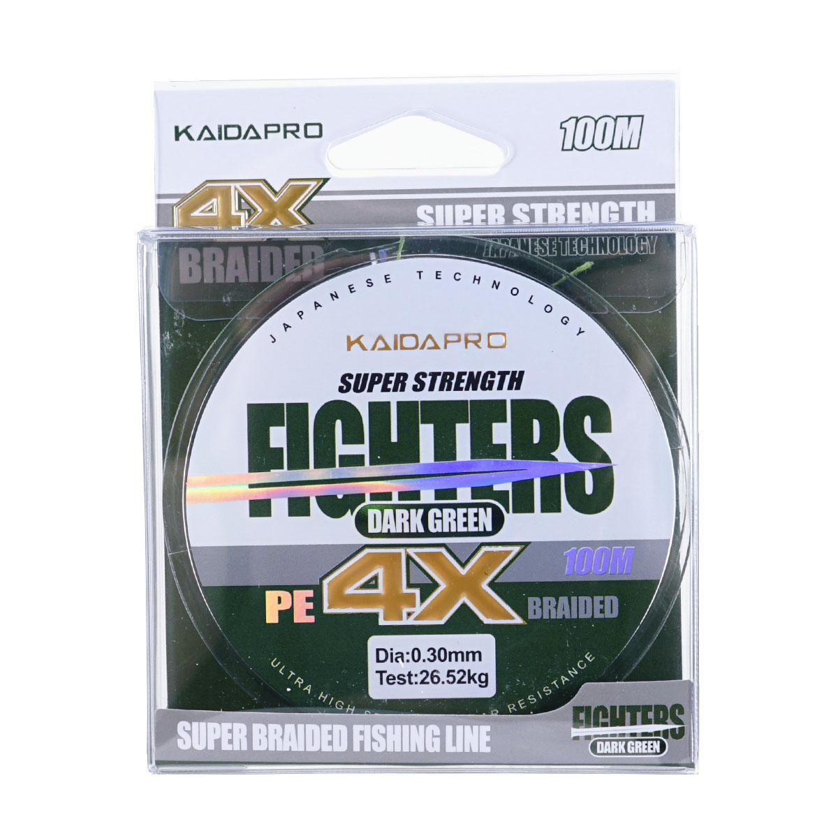 Шнур Kaida Pro Fighters 4X Dark Green 100м 0,30мм 26,52кг темно-зеленый (PX402-30)