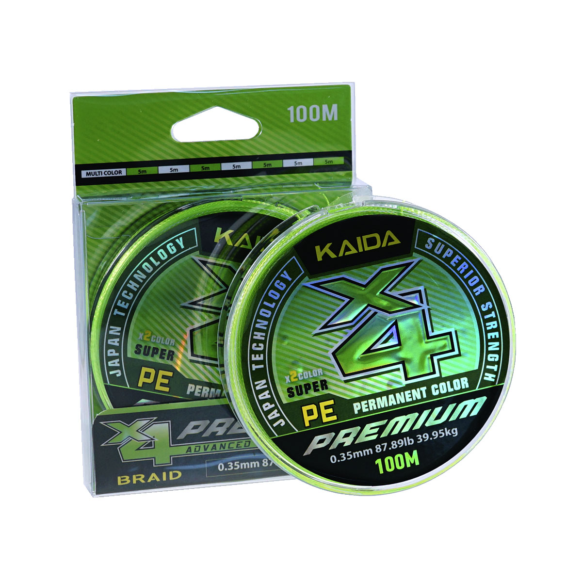 Шнур Kaida Premium 4X 100м 0,35мм 39,95кг салатовый, белый