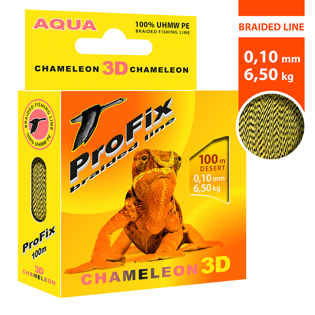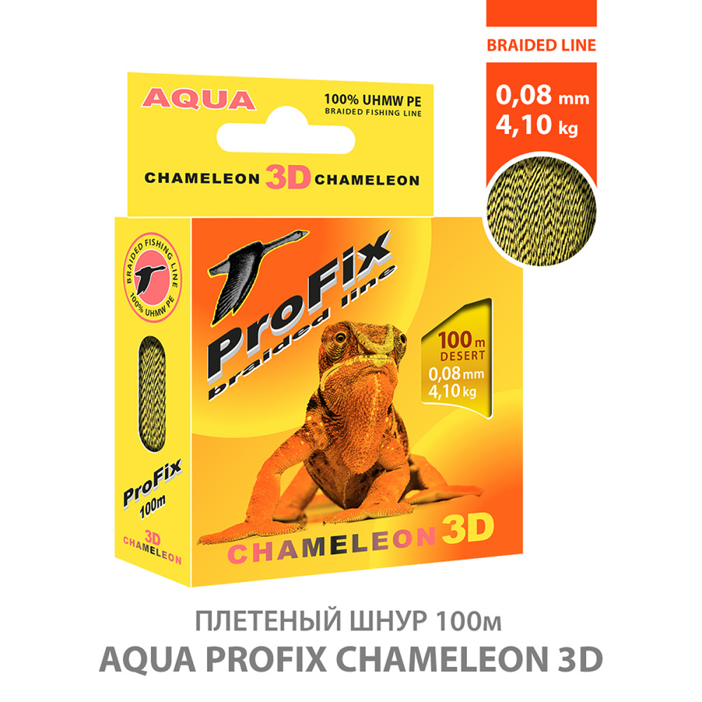 Шнур Aqua ProFix Chameleon 3D 100м 0,10мм 6,5кг КМФ желтый