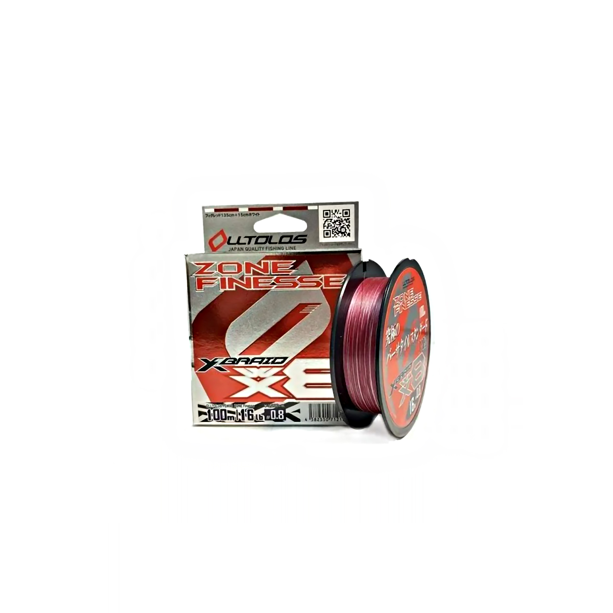 Шнур YGK X-Braid Olltlos PE WX8 Zone Finesse 100м 0,148мм 7,2кг красный (0.8PE)