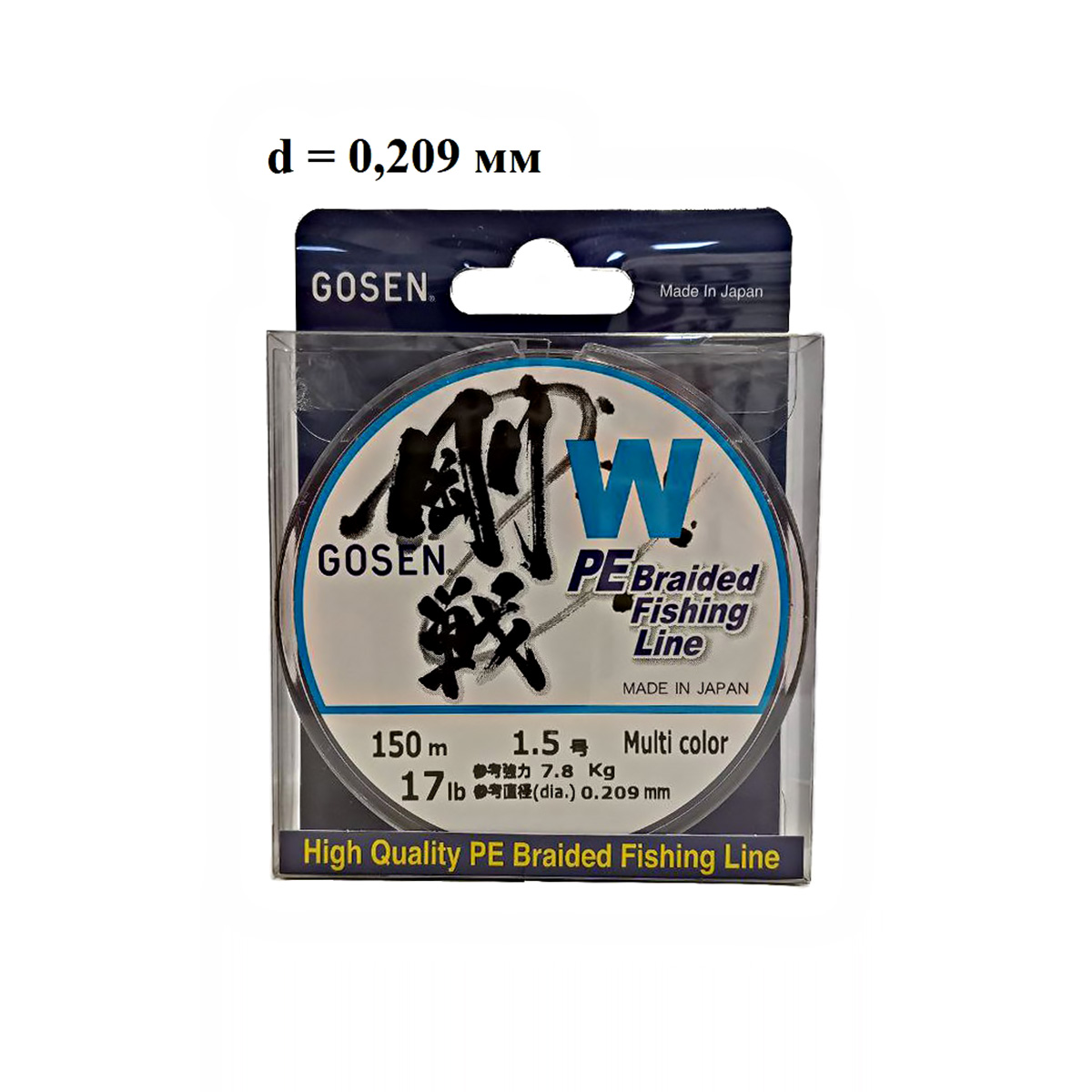 Шнур Gosen W4 Braid 150м 0,209мм 7,8кг мультиколор (1.5PE)