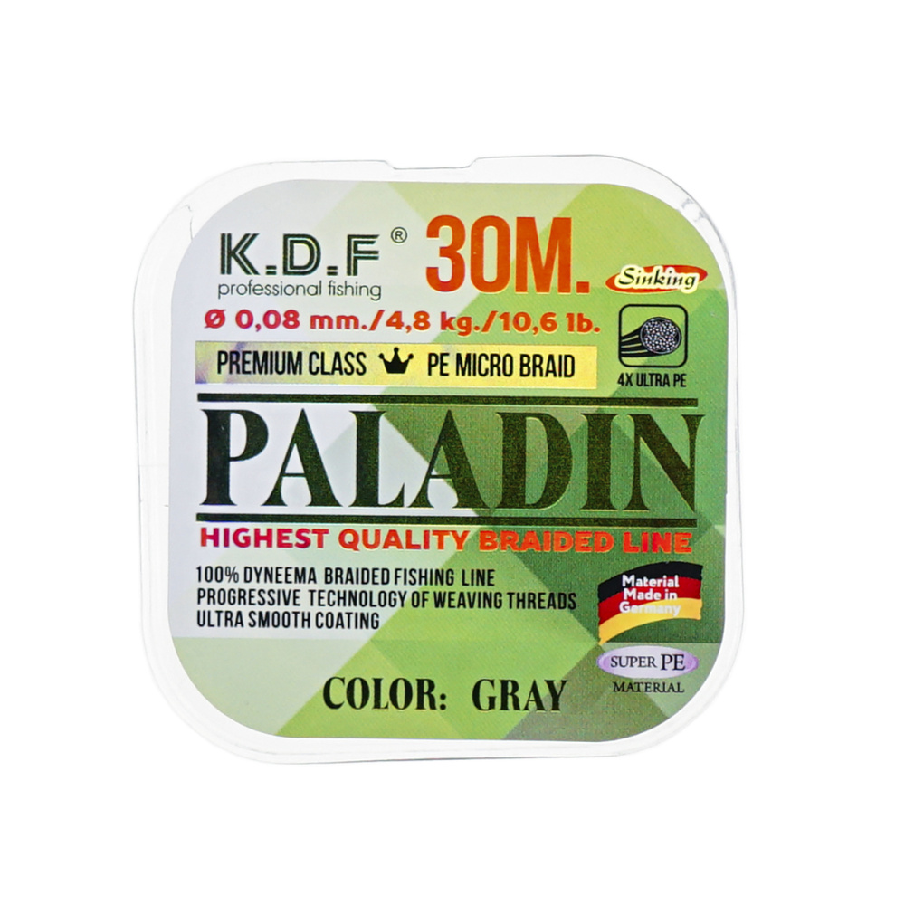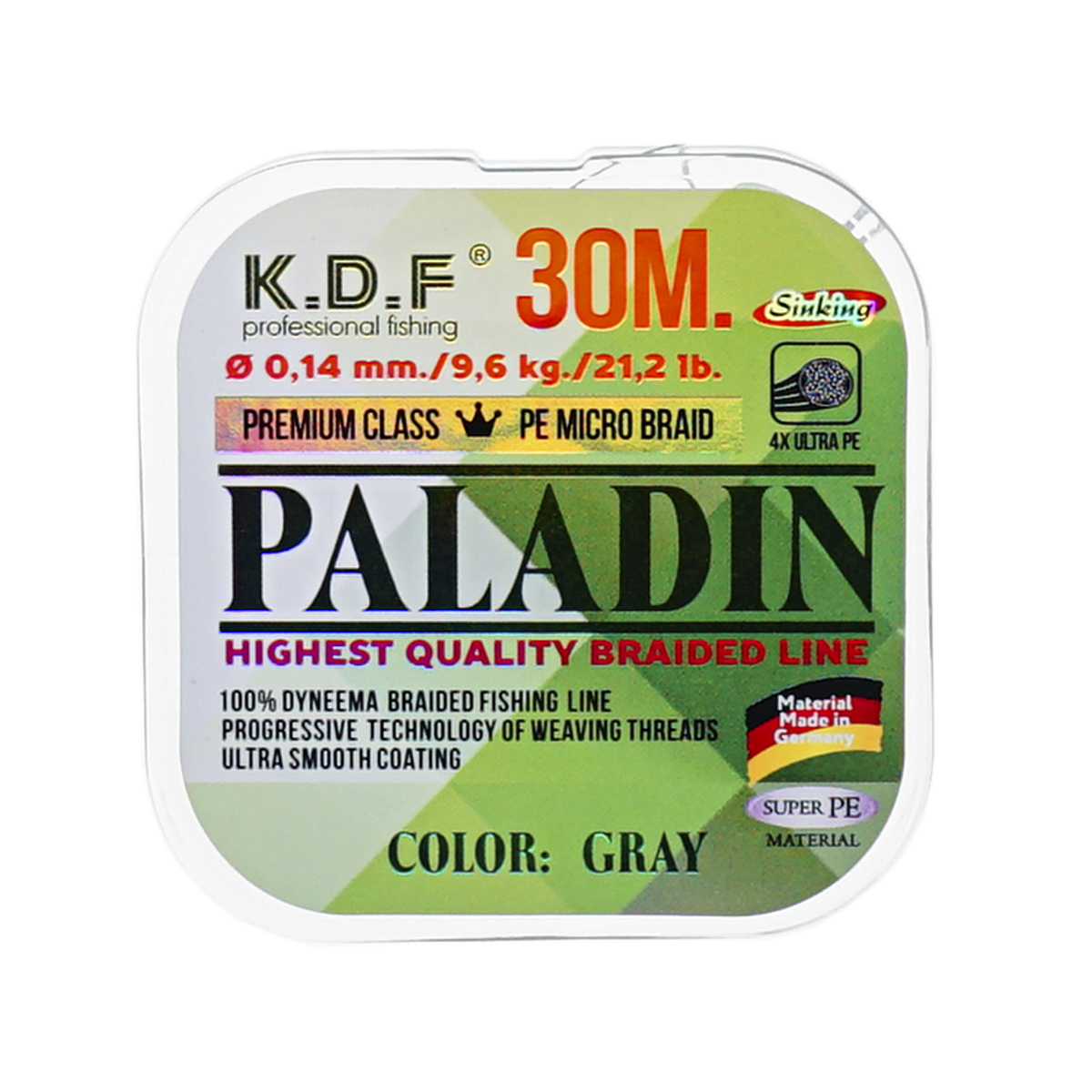 Конструкция состоит из четырёх прочных жил, плотно переплетённых друг с другом, что придаёт поверхности шнура гладкую структуру. Это способствует повышению точности и дальности забросов. Серия Paladin подходит для разных видов ловли: её успешно применяют как любители спиннинга, так и поклонники фидера. Шнур имеет серый цвет и стандартную длину размотки 30 метров.