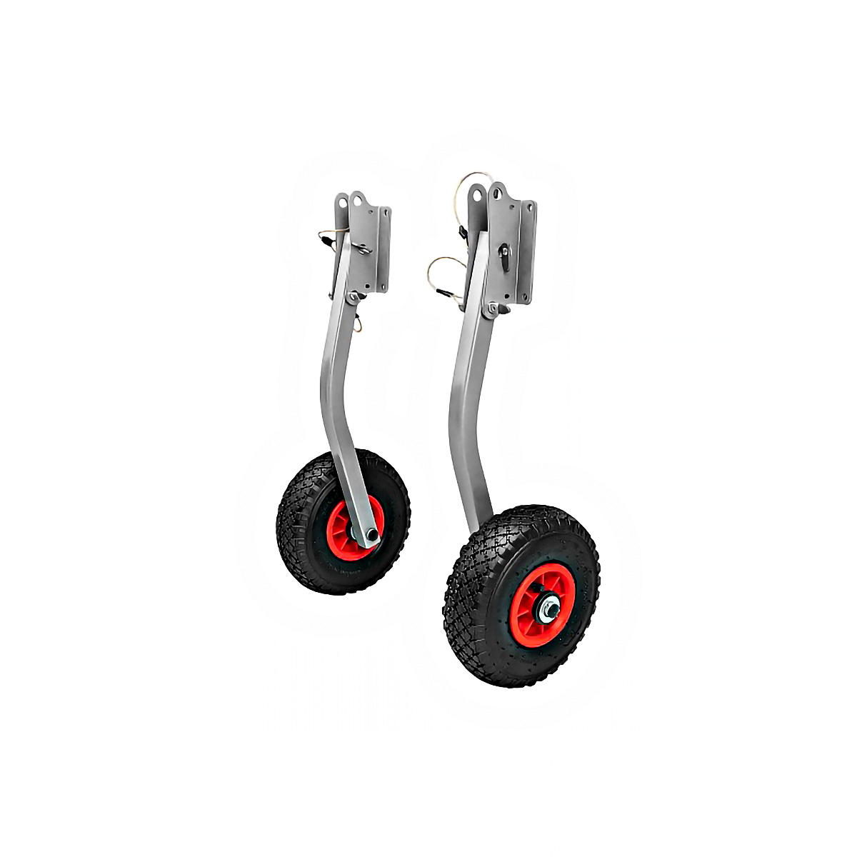 Колеса крепятся к внешней стороне транца, таким образом, чтобы их можно было сложить вверх и вниз беспрепятственно.
