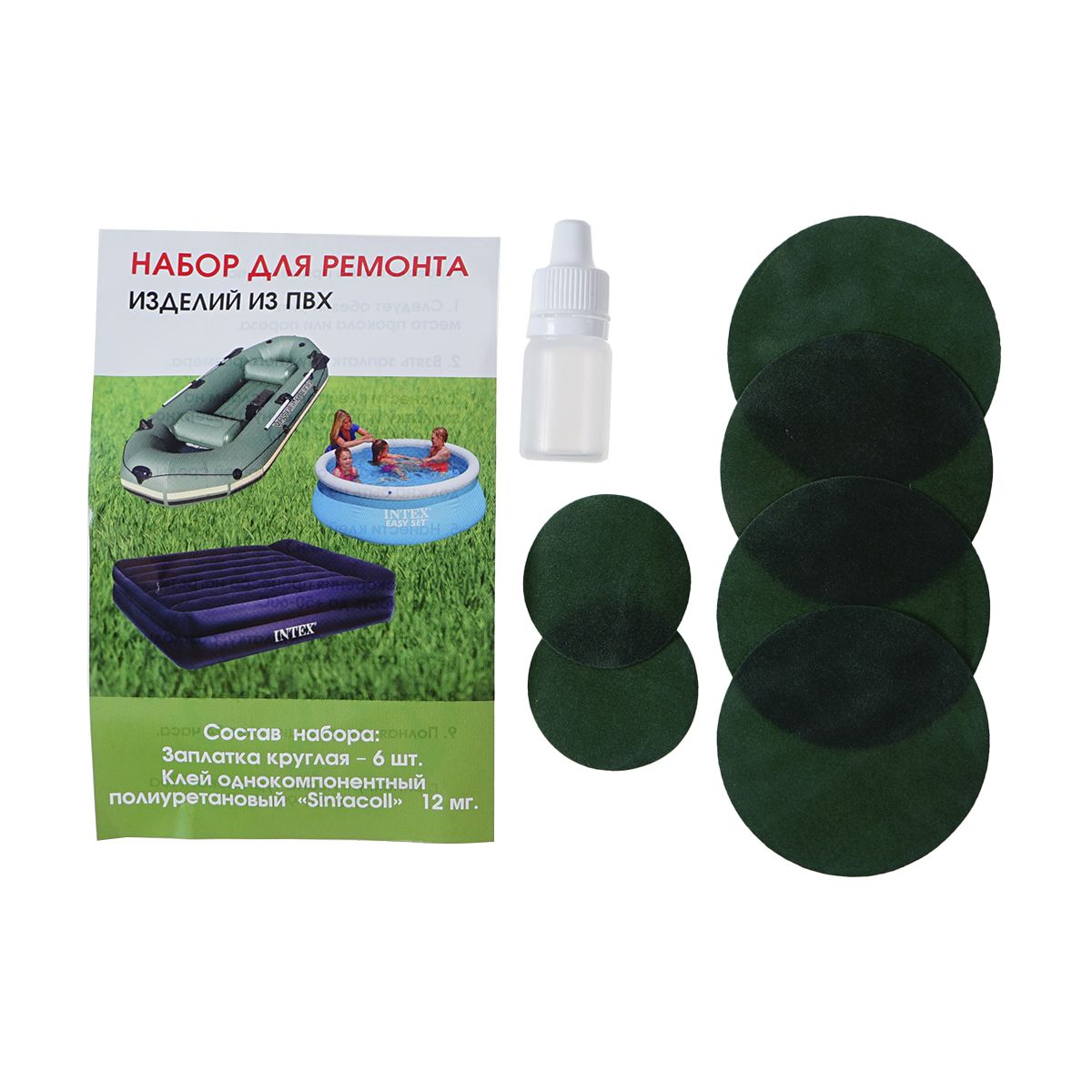 Комплект состоит из тюбика клея Sintacoll (однокомпонентный полиуретановый клей), заплаток (круглые 6 шт.)