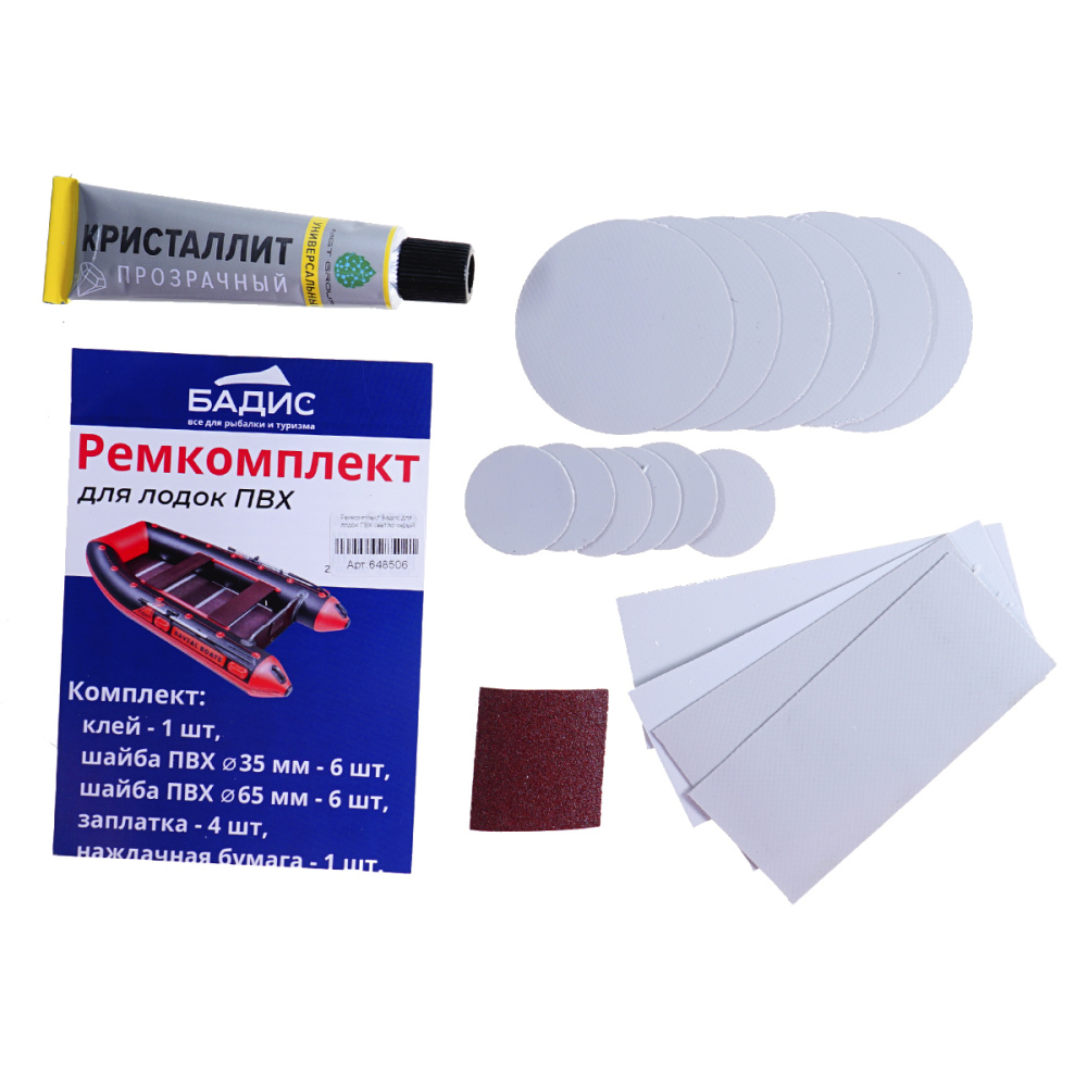 «ремонт ПВХ лодок»; «набор для ремонта ПВХ лодок»; «ремкомплект лодки»; «клей + заплатки»;