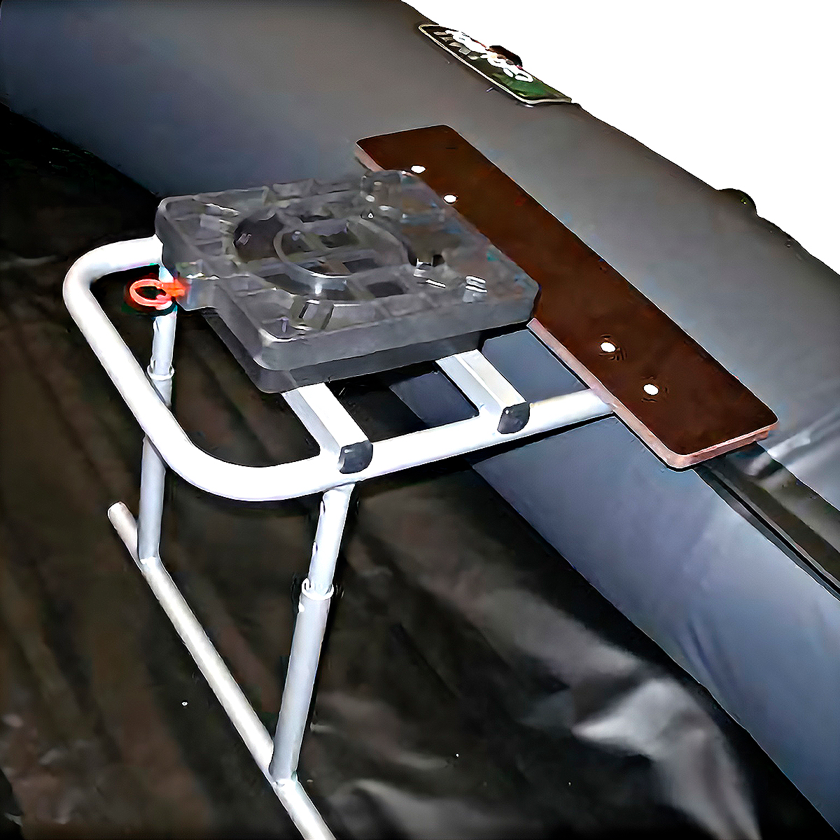Конструкция держится на баллоне лодки при помощи крепления на кликтрос.