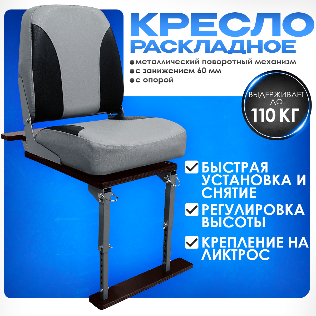 Реальный комфорт: обивка из морского винила (искусственная кожа) выдерживает влагу и солнце, сиденье широкого формата 41×35 см
