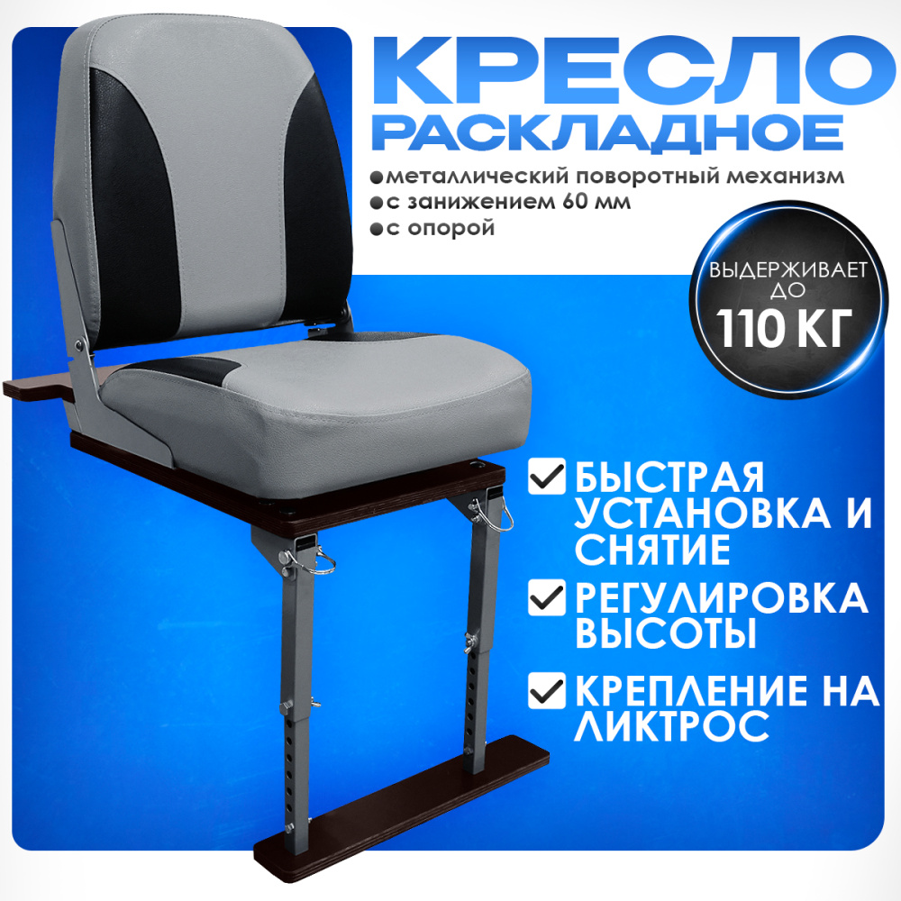Кресло раскладное Патриот мягкое+складная регулируемая опора с фанерным основанием на ликтрос с занижением, с металлическим поворотным механизмом