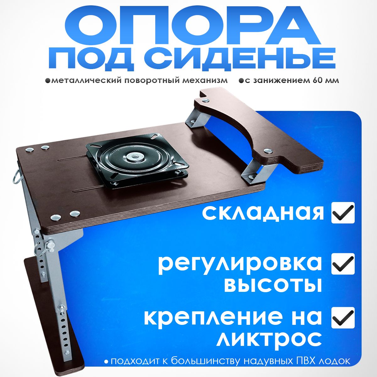 Опора под сиденье регулируемая складная с фанерным основанием на ликтрос с металлическим поворотным механизмом с занижением 60мм