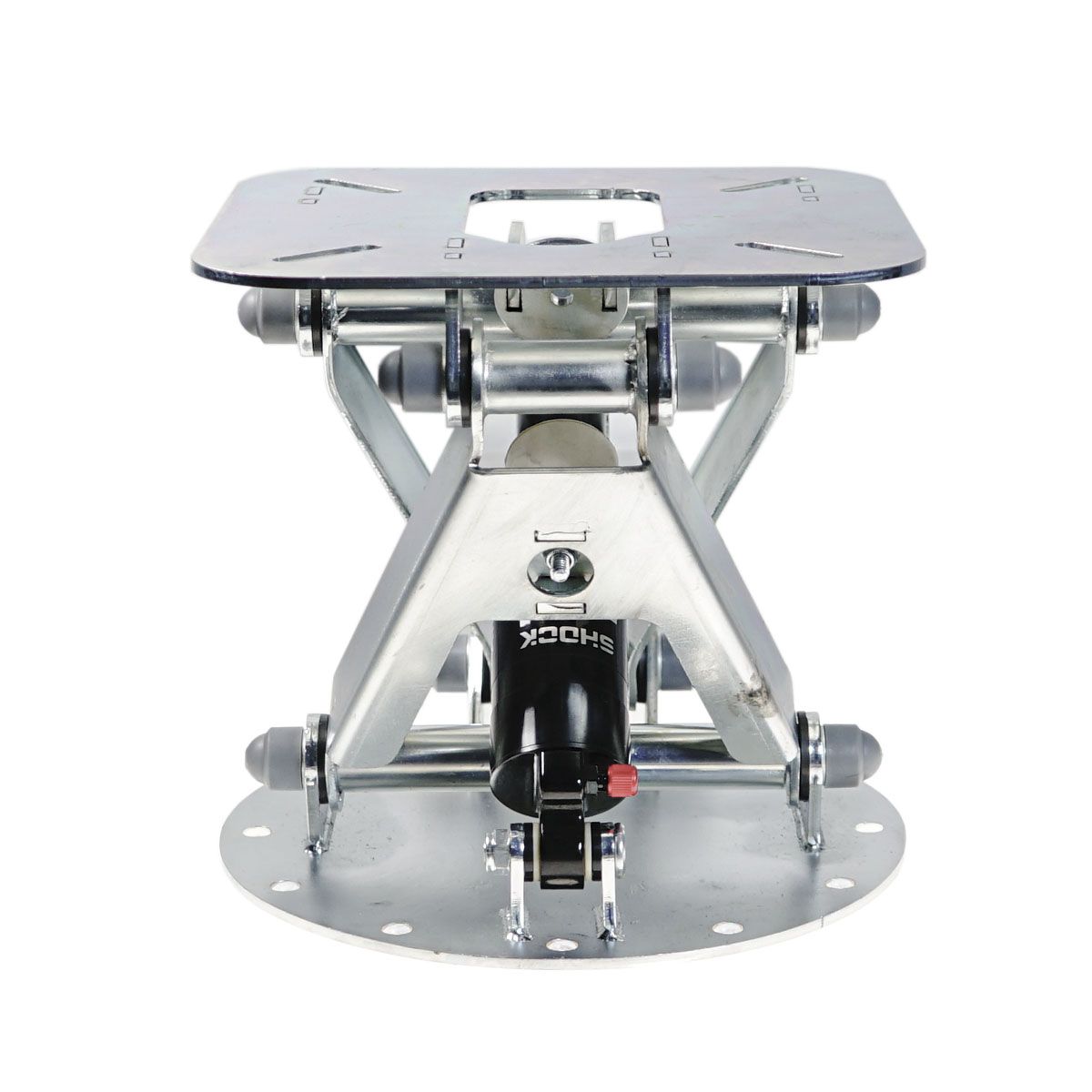 Отличия от других решений: в сравнении с окрашенными версиями стойка с оцинкованным покрытием лучше защищена от сколов и ржавчины; в конструкции применяется один амортизирующий элемент с рабочим ходом 45 мм и расчетом под полезную нагрузку 60–120 кг — этого диапазона достаточно для большинства рыболовных и прогулочных сценариев. При этом база диаметром 230 мм обеспечивает устойчивую посадку кресла, а собственный вес узла около 5,5 кг добавляет жесткости креплению без излишней массы