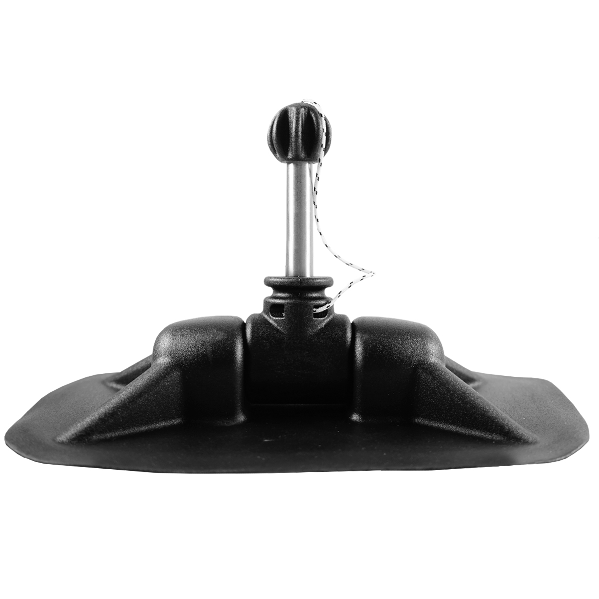 Крестовая форма основания распределяет нагрузку по бортам и помогает сохранить жёсткость узла при активной гребле. Сочетание пластифицированного ПВХ, армированного полиамида и нержавеющей стали обеспечивает устойчивость к износу и коррозии, а чёрный цвет органично смотрится на большинстве ПВХ‑лодок. По сравнению с типовыми овальными площадками модель выделяется прочной крестовой геометрией при компактных габаритах 97×208 мм, что упрощает размещение на борту и повышает надёжность узла