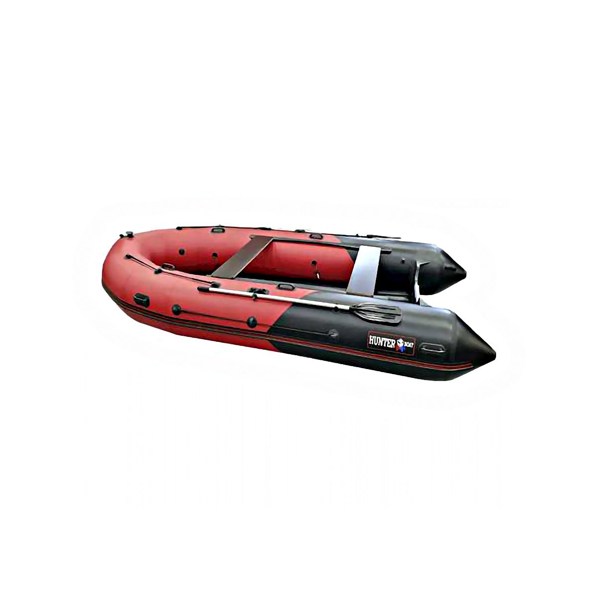 Лодка Хантер 420 PRO, надувное дно, красная, черная