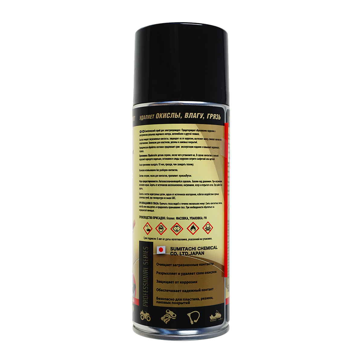 Применение :Обработайте детали спреем, после чего установите их. В случае контактов с сильной коррозией подождите подольше, отставшие следы коррозии сотрите салфеткой или щеткой. После применения выждать 10 мин, прежде, чем заводить технику. Возможно использование без разборки контактов.