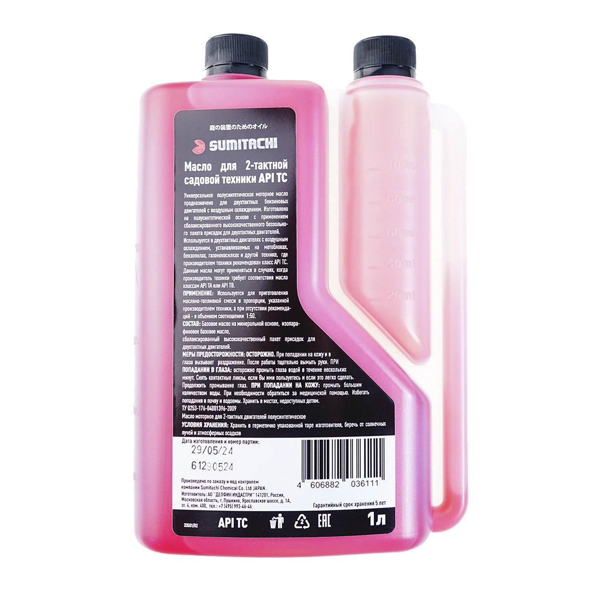Масло 2-тактное Sumitachi Garden Oil 1000мл для садовой техники, с дозатором (полусинтетическое)