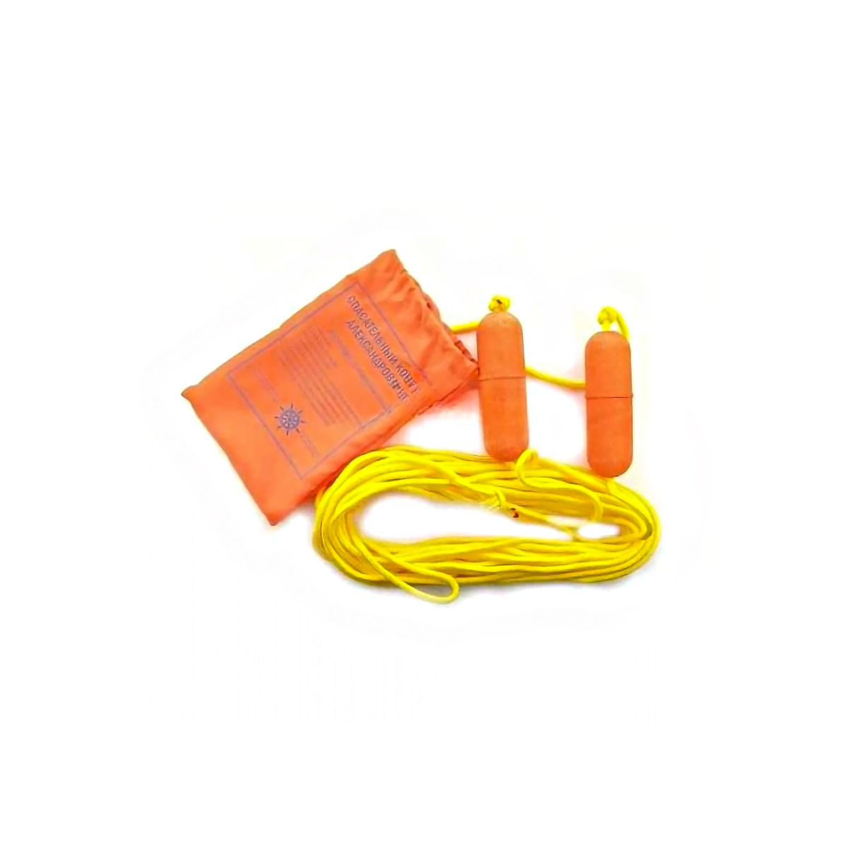 Веревка с петлёй и двумя поплавками яркого-оранжевого цвета.