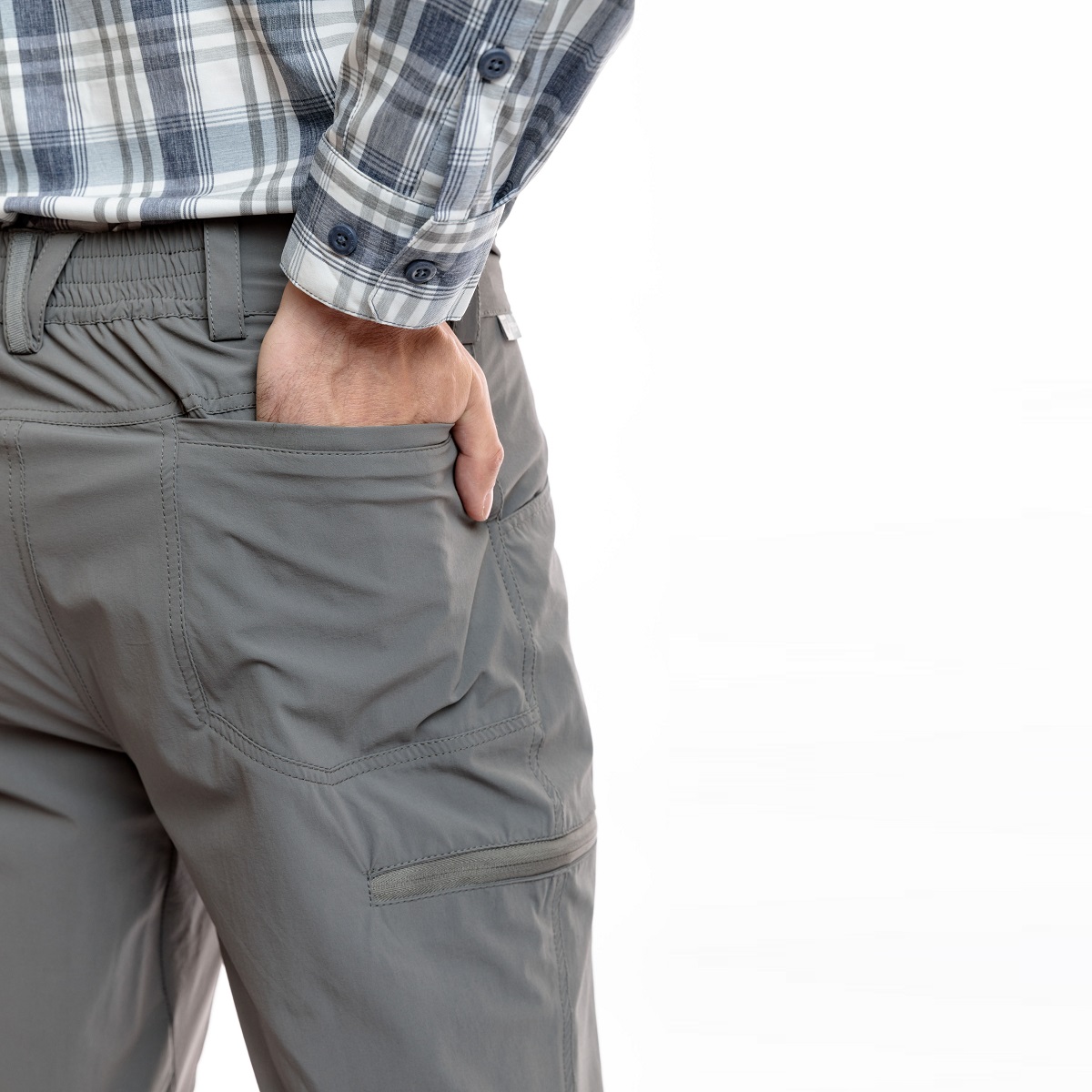 — фиксация брюк по поясу спереди, на 2 кнопки