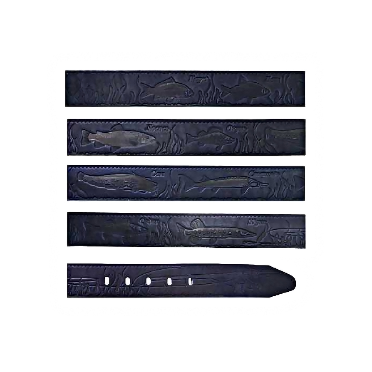 Ремень рыбака, натуральная кожа 130х4см синий (рисунок тиснения Рыбы России)