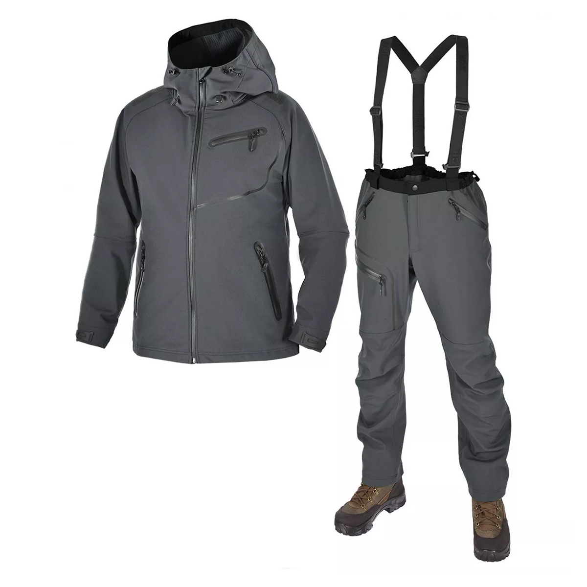 Высокотехнологичный материал Softshell: Объединяет свойства мембраны и эластичность ткани, что делает костюм легким, комфортным и непродуваемым. Отлично выдерживает несильный дождь.