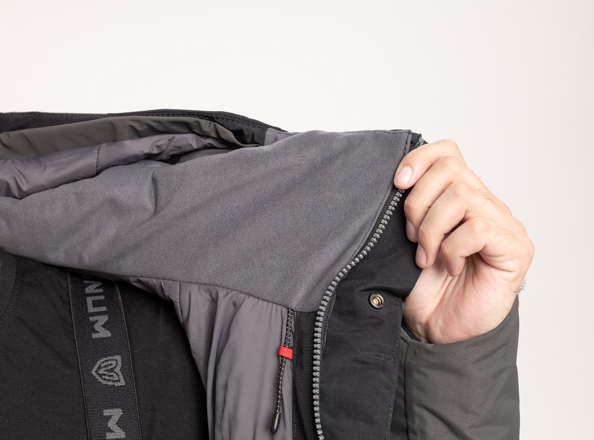— центральная застежка на молнии, с двойной ветрозащитной планкой