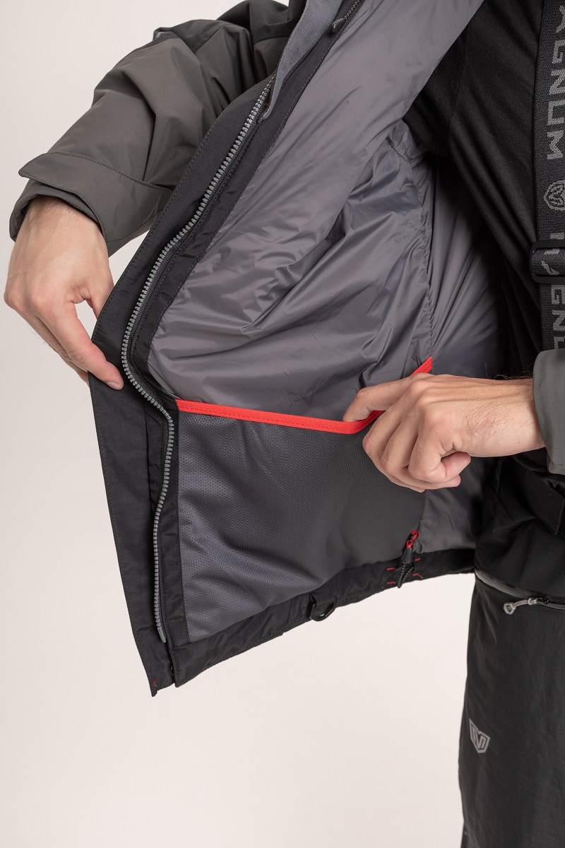 — карманы куртки: 2 нагрудных на молнии; 2 нижних на молнии; 1 внутренний на молнии; 1 карман из сетки на подкладе