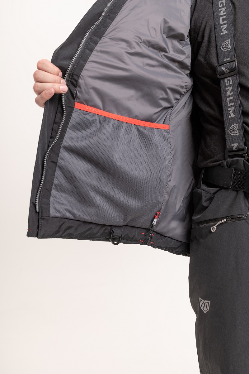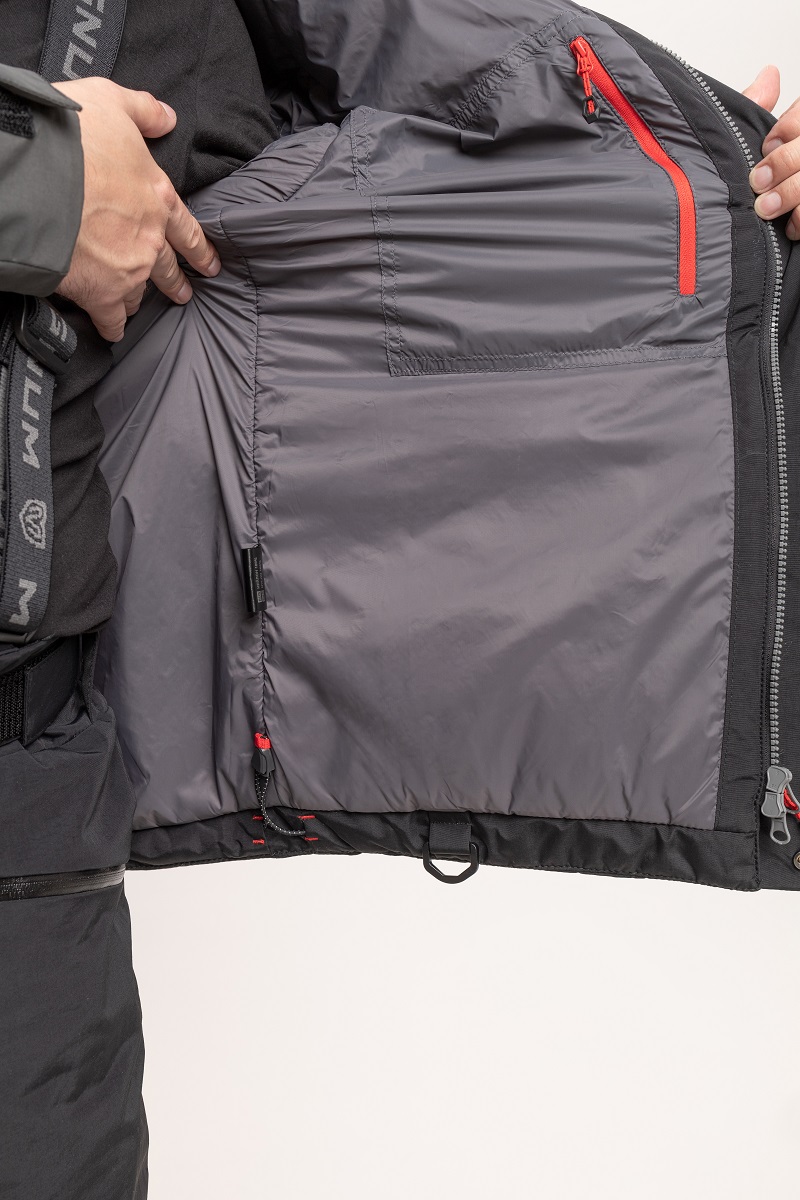 — карманы куртки: 2 нагрудных на молнии; 2 нижних на молнии; 1 внутренний на молнии; 1 карман из сетки на подкладе