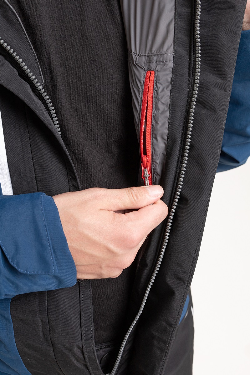 — карманы куртки: 2 нагрудных на молнии; 2 нижних на молнии; 1 внутренний на молнии; 1 карман из сетки на подкладе