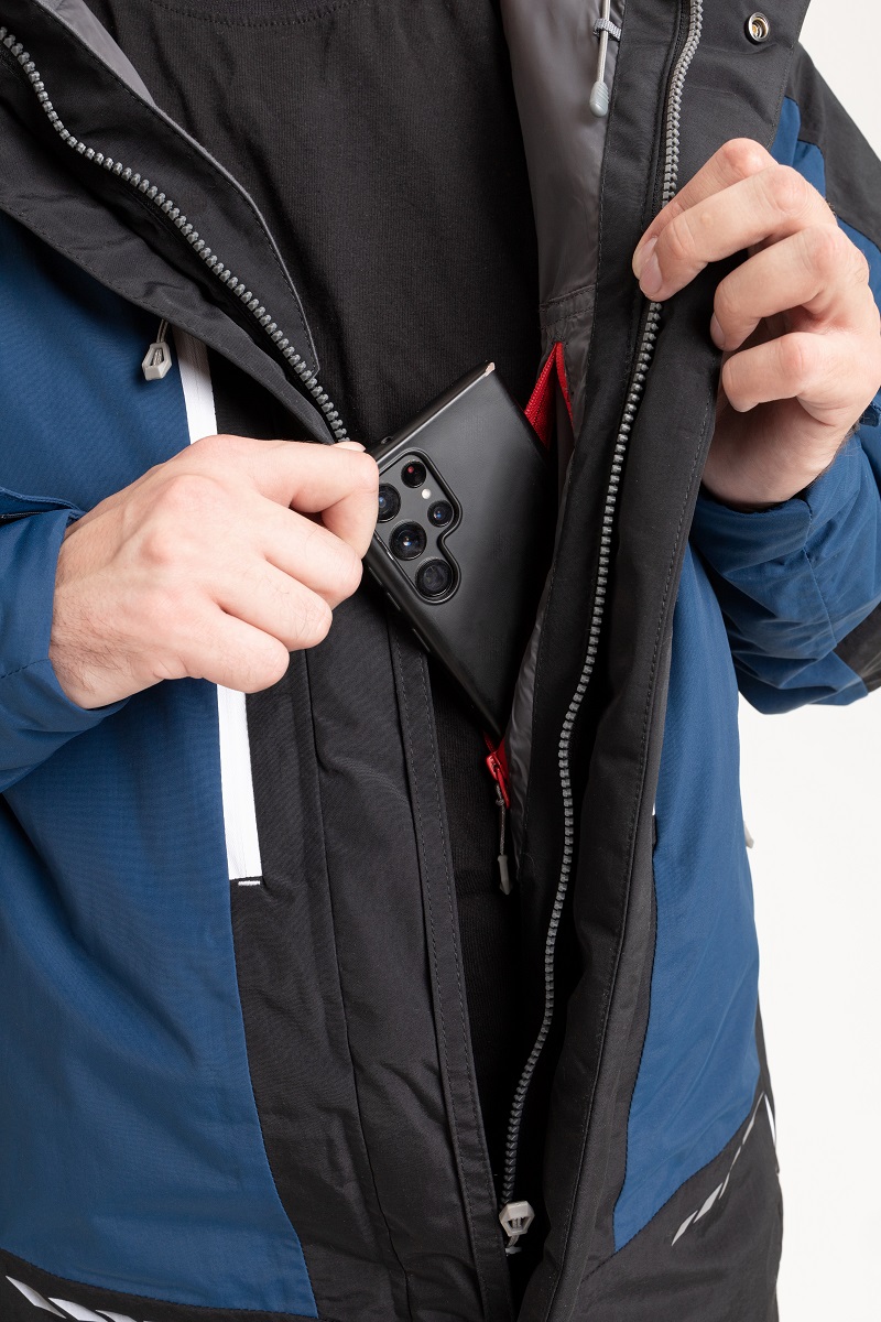 — карманы куртки: 2 нагрудных на молнии; 2 нижних на молнии; 1 внутренний на молнии; 1 карман из сетки на подкладе
