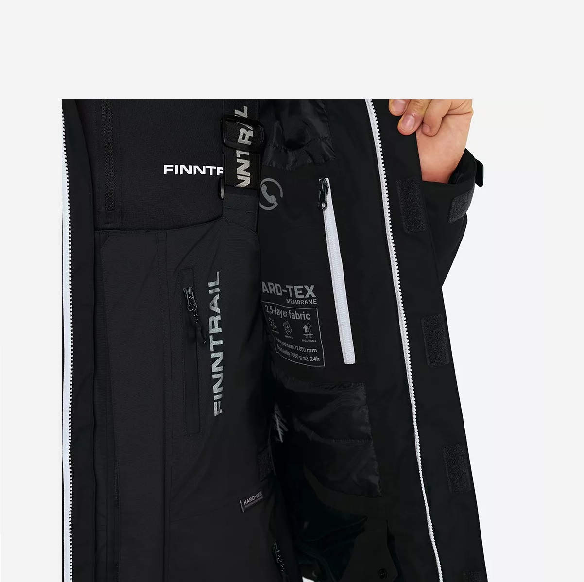 Все швы и молнии герметично проклеены, чтобы влага и ветер не проникали внутрь костюма.