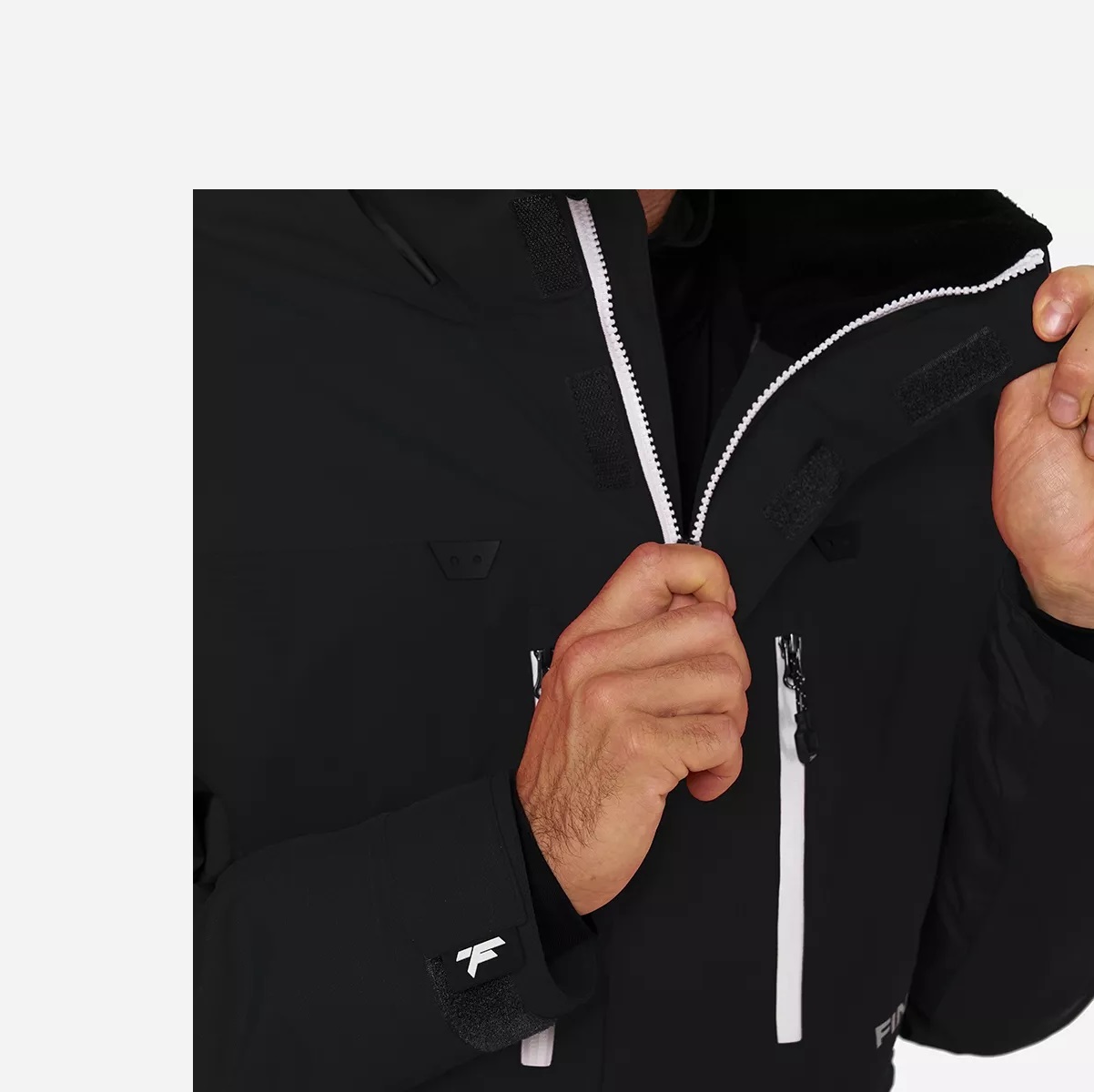 Все швы и молнии герметично проклеены, чтобы влага и ветер не проникали внутрь костюма.