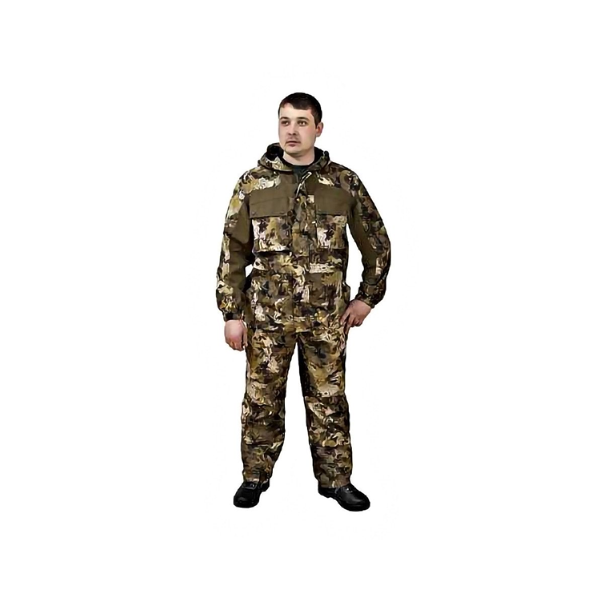 Анатомический крой костюма обеспечит свободу движений. Расцветка отлично камуфлирует под природный ландшафт.