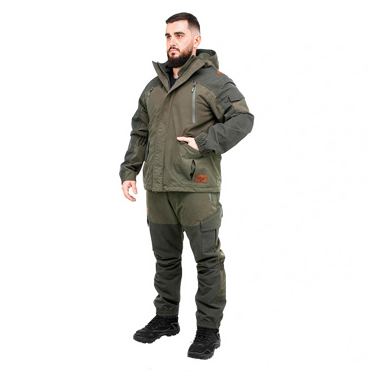В сравнении с обычными «горками» здесь используется полноценная мембрана с DWR‑пропиткой и TPU‑покрытием, а также продуманная эргономика: капюшон регулируется по высоте и объему, низ куртки — стяжками, манжеты — утяжками; на плечах — противоскользящие накладки. Куртка и брюки оснащены влагозащитными молниями и удобными карманами, в брюках — вшитые гетры и съемные эластичные подтяжки для точной посадки. Такой набор делает модель тише, суше и функциональнее многих аналогов без мембраны и проклейки швов.