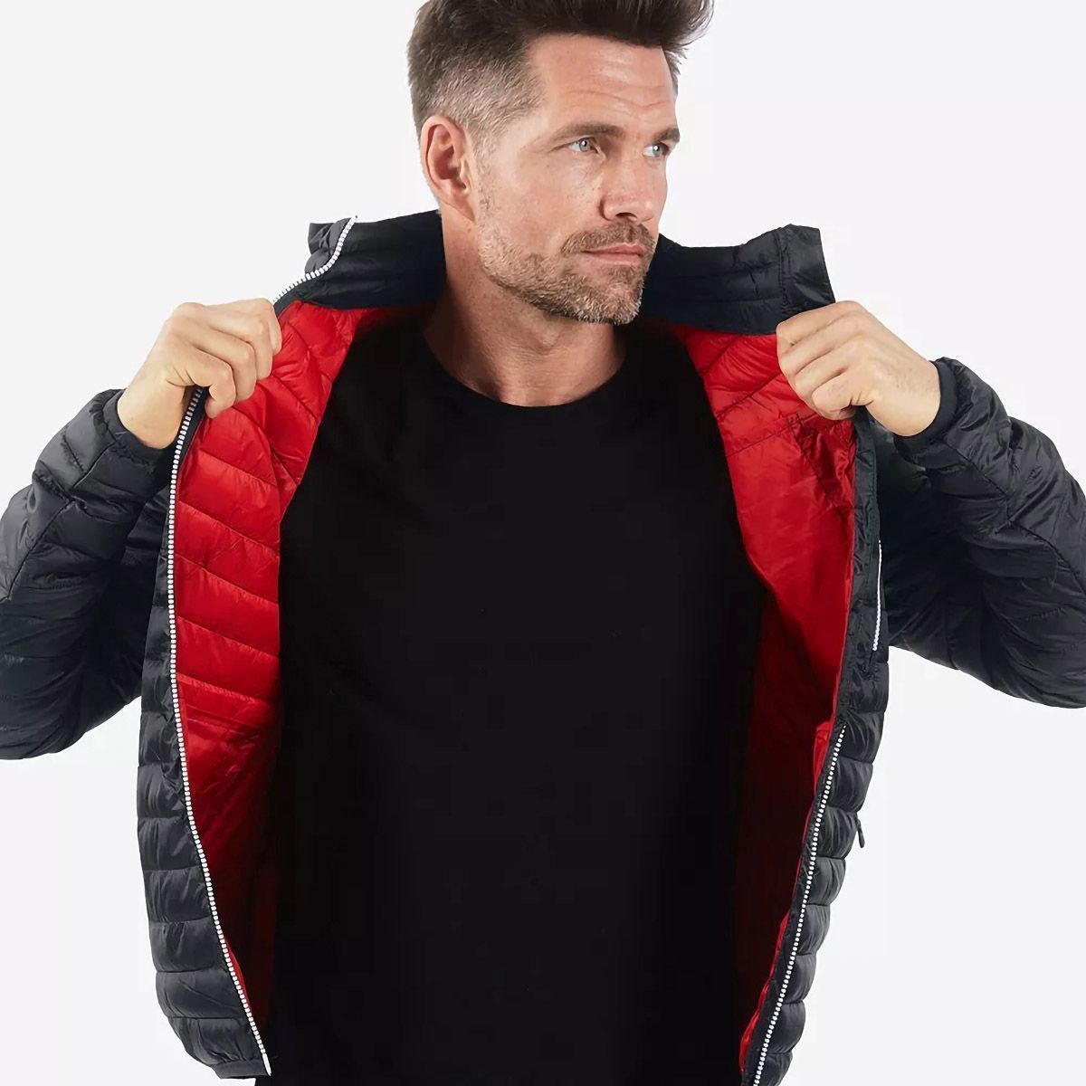 Куртка оснащена утеплителем DuPont Sorona (лёгкий, теплоёмкий экологический наполнитель, био-пух), который обеспечивает защиту от холода. Благодаря тому, что материал равномерно распределён по ячейкам, он не комкается и не собирается внизу после стирки. Внешний слой имеет водоотталкивающее покрытие, защищающее от ветра и легкого дождя. Артикулированный крой учитывает анатомию человеческого тела и обеспечивает полную свободу движений. Функциональный дизайн модели объединяет в себе продуманные детали и оригинальную тёмно-синюю расцветку. Модель имеет три кармана: два боковых и один нагрудный с тракторными молниями. Высокий воротник, внутренняя планка и эластичная лента на рукавах надёжно защищают от ветра.