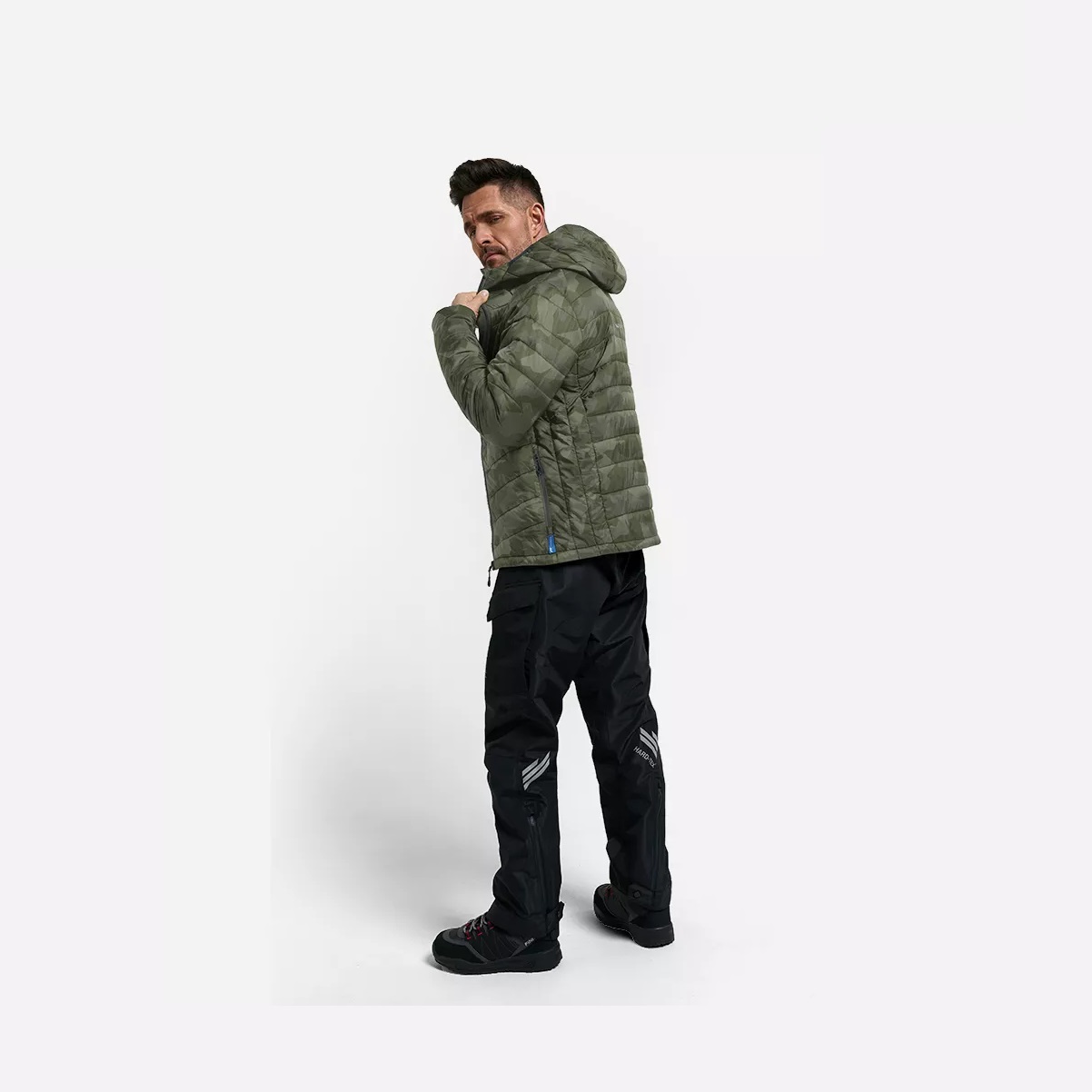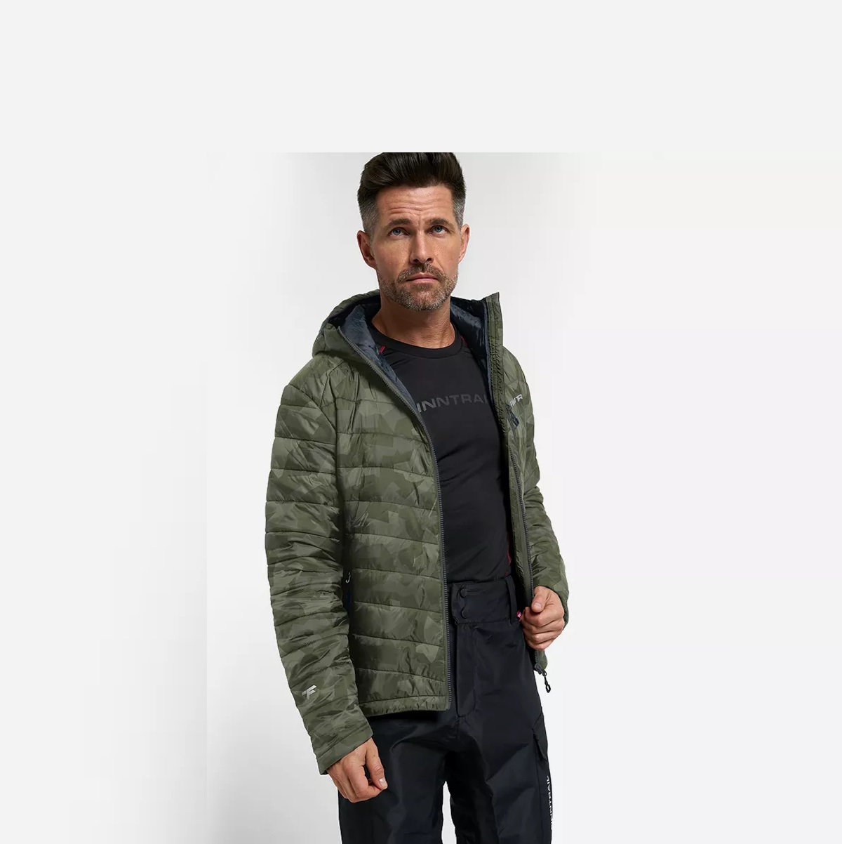 Куртка оснащена утеплителем DuPont Sorona ,который обеспечивает защиту от холода. Благодаря тому, что материал равномерно распределён по ячейкам, он не комкается и не собирается внизу после стирки. Внешний слой имеет водоотталкивающее покрытие, защищающее от ветра и легкого дождя. Артикулированный крой учитывает анатомию человеческого тела и обеспечивает полную свободу движений. Функциональный дизайн модели объединяет в себе продуманные детали и оригинальную камуфляжную расцветку. Модель имеет три кармана: два боковых и один нагрудный с тракторными молниями. Высокий воротник, внутренняя планка и эластичная лента на рукавах надёжно защищают от ветра.