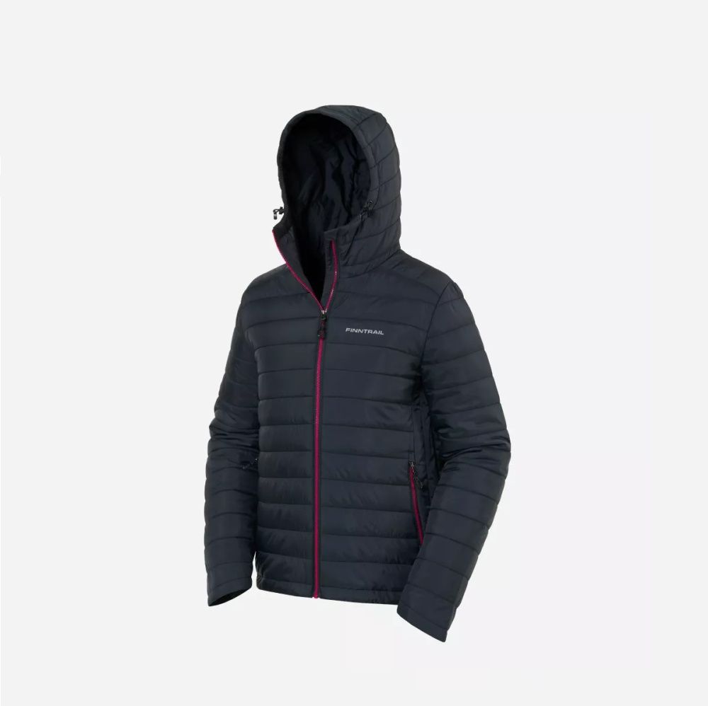 , который обеспечивает защиту от холода. Благодаря тому, что материал равномерно распределён по ячейкам, он не комкается и не собирается внизу после стирки. Внешний слой имеет водоотталкивающее покрытие, защищающее от ветра и легкого дождя. Артикулированный крой учитывает строение женского тела и обеспечивает полную свободу движений. Функциональный дизайн модели объединяет в себе продуманные детали и стильную тёмно-синюю расцветку с розовыми молниями. Модель имеет три кармана: два боковых и один нагрудный с тракторными молниями. Высокий воротник, внутренняя планка и эластичная лента на рукавах надёжно защищают от ветра. Компактная модель легко складывается и занимает минимум места в багаже.