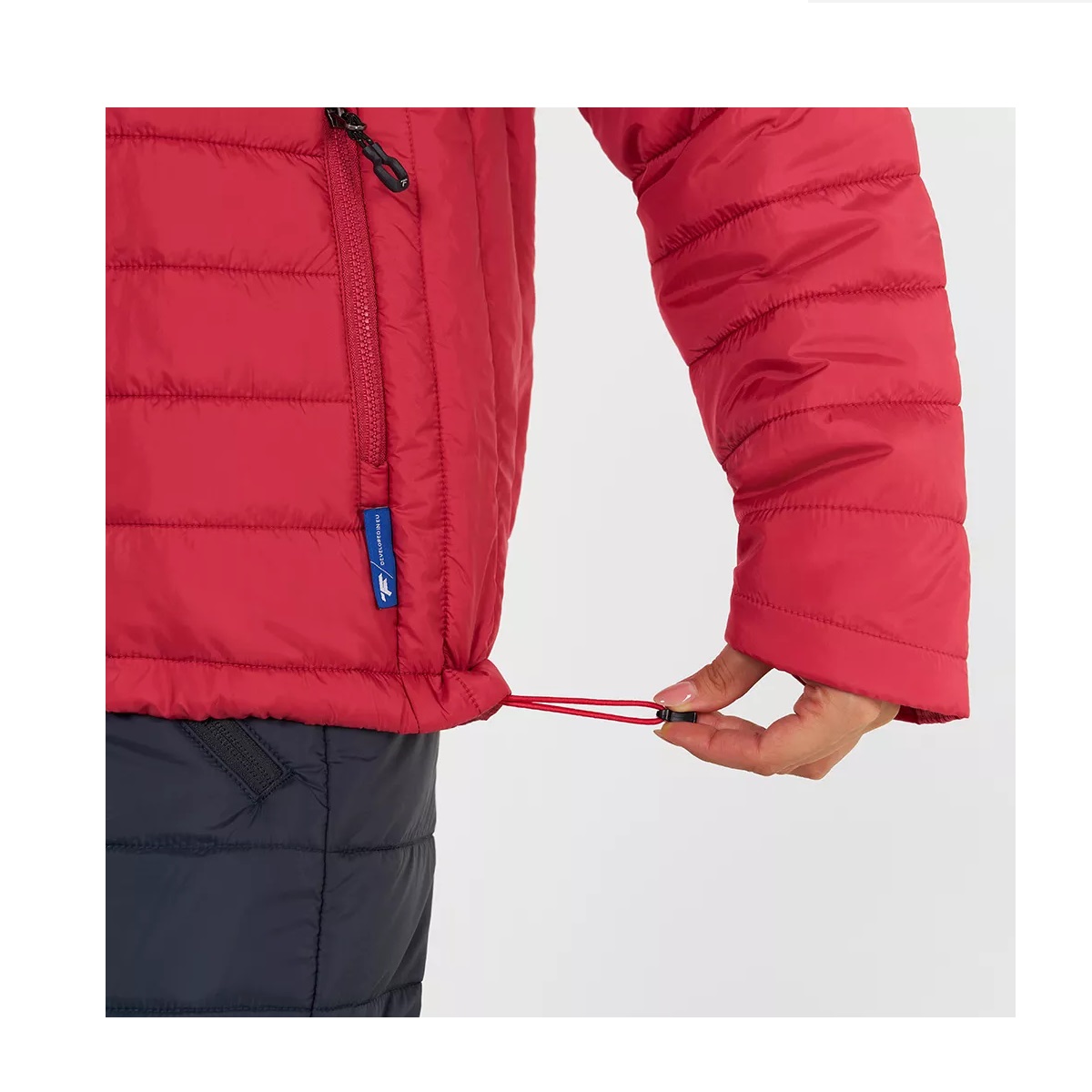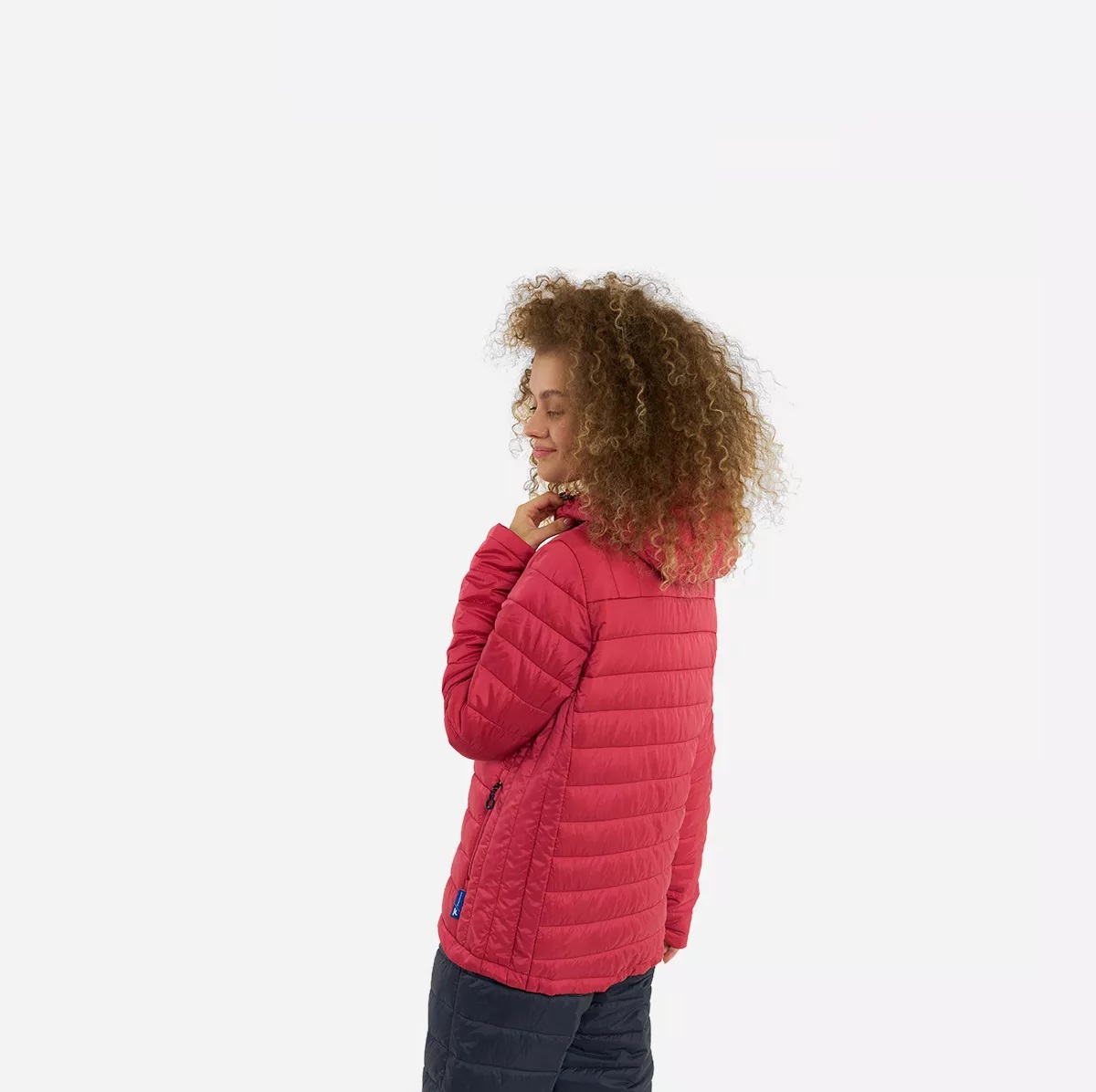Куртка оснащена утеплителем DuPont Sorona ,который обеспечивает защиту от холода. Благодаря тому, что материал равномерно распределён по ячейкам, он не комкается и не собирается внизу после стирки. Внешний слой имеет водоотталкивающее покрытие, защищающее от ветра и легкого дождя. Артикулированный крой учитывает строение женского тела и обеспечивает полную свободу движений. Функциональный дизайн модели объединяет в себе продуманные детали и оригинальную тёмно-розовую расцветку. Модель имеет три кармана: два боковых и один нагрудный с тракторными молниями. Высокий воротник, внутренняя планка и эластичная лента на рукавах надёжно защищают от ветра. Компактная модель легко складывается и занимает минимум места в багаже.