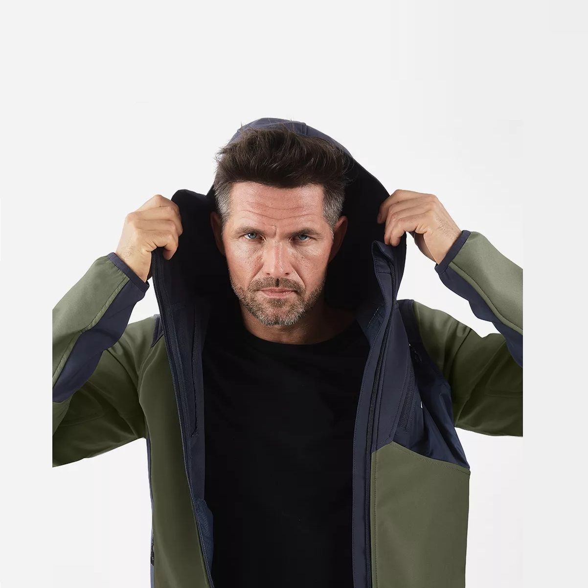 Трёхслойная ткань с мембраной SoftShell защищает от воды и ветра. Пропитка DWR предотвращает впитывание вязкой грязи и влаги, препятствуя появлению на поверхности следов и разводов. Артикулированный крой учитывает анатомию человеческого тела и обеспечивает полную свободу движений. Внутренний слой куртки состоит из мягкого флиса, а на внешний слой нанесено водоотталкивающее покрытие. Функциональный дизайн модели объединяет в себе продуманные детали и оригинальную расцветку хаки. Модель Nitro имеет три внешних кармана на молнии: два боковых с тёплой подкладкой для согревания рук и один нагрудный. Дополнительно модель оснащена внутренним карманом. Высокий воротник-стойка переходит в капюшон, который плотно прилегает к голове. Эластичная резинка в основании куртки, на рукавах и капюшоне