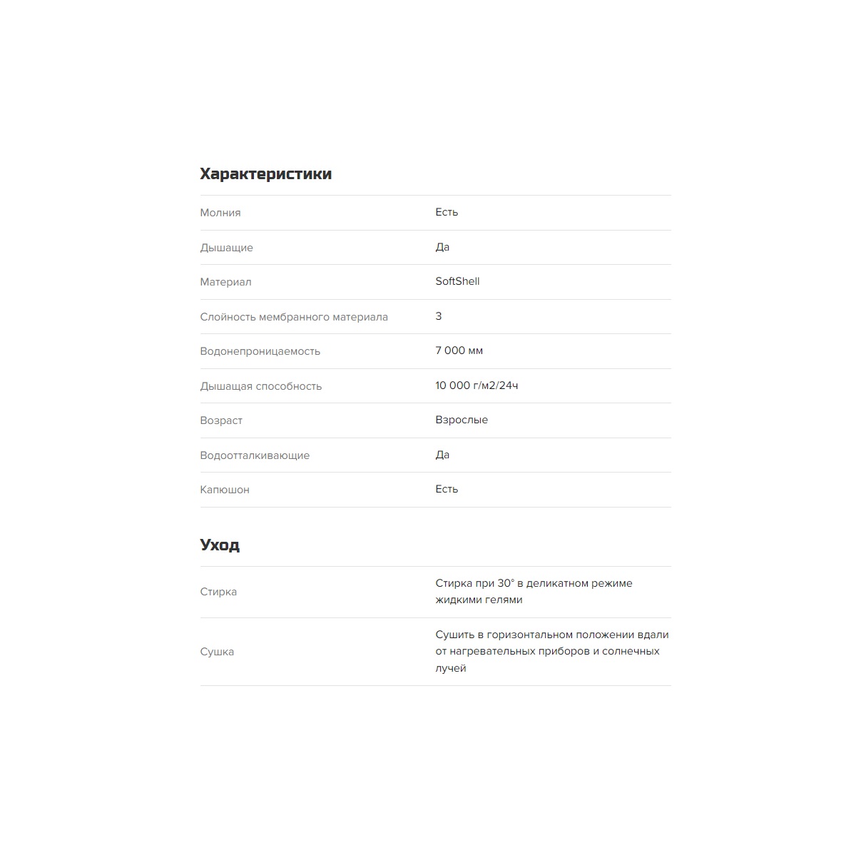 3-слойный материал SoftShell с мембраной и водонипроницаемостью до 7 000 мм выдерживает небольшой дождь. Водоотталкивающее покрытие DWR предотвращает впитывание вязкой грязи и влаги, препятствуя появлению на поверхности следов и разводов, помогая ткани оставаться сухой. Внутренний слой из мягкого микрофлиса обеспечивает дополнительное тепло. Артикулированный крой и анатомическая конструкция в районе локтей обеспечивают комфортную посадку и полную свободу движений. Функциональный дизайн модели объединяет в себе продуманные детали, оригинальную тёмно-серую расцветку и световозвращающие логотипы. Объёмный капюшон плавно переходит в высокую стойку-воротник и укрывает от ветра. Благодаря эластичным застёжкам на рукавах, капюшоне и низу куртки модель плотно сидит на фигуре и дополнительно защищает от холода.