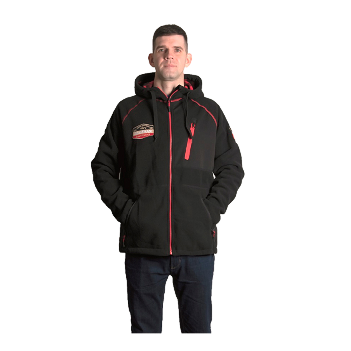 (Double Face) поларфлис. Куртка сложного анатомического кроя с центральной молнией, одним большим нагрудным и двумя боковыми карманами. Сзади под капюшоном имеется вешалка. Низ куртки и капюшон оснащены кулисками. Левый рукав и правая полочка декорированы цветными нашивками. Флисовые материалы известны своей хорошей гигроскопичностью и способностью удерживать тепло тела за счет структуры материала. Куртка рекомендована для использования на рыбалке, охоте, отдыхе и для занятий активными видами спорта в любое время года.