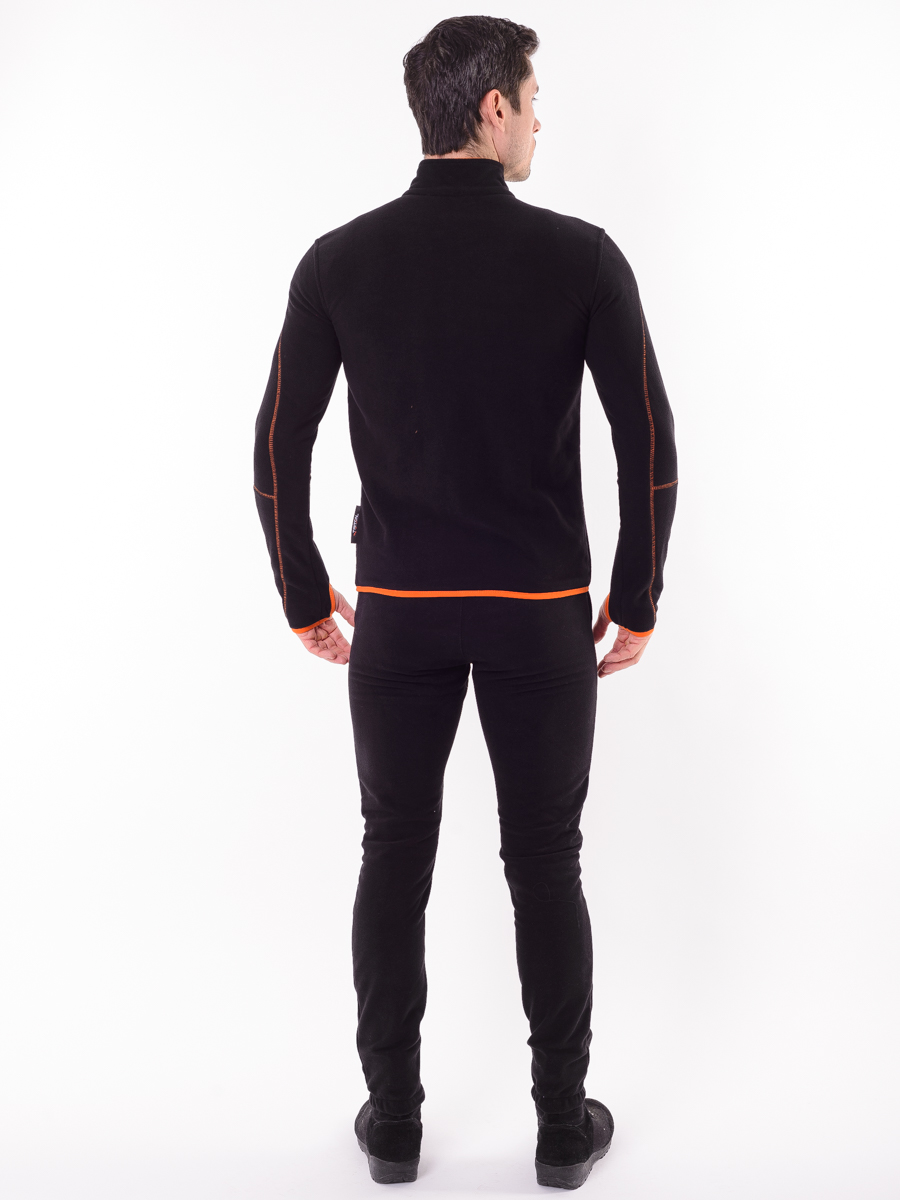 Флис – неструктурированный «валяный» материал, при производстве которого используются специальные технологии плетения волокон и создания ворса, при этом ворс составляет единое целое с основой. Ткань хорошо сохраняет тепло, приятна на ощупь, не вызывает аллергии. Благодаря специальной обработке волокон, препятствующей скатыванию ворса, долго сохраняет первоначальный внешний вид. Флисовый костюм состоит из куртки и брюк. Используется отдельно в прохладную погоду, либо в качестве второго утепляющего слоя под верхнюю одежду для сохранения тепла тела. На куртке расположены 2 боковых и 1 нагрудный карман на молнии, а также разрез под большой палец для удобства надевания. 2 боковых кармана на брюках. Поясной шнурок.