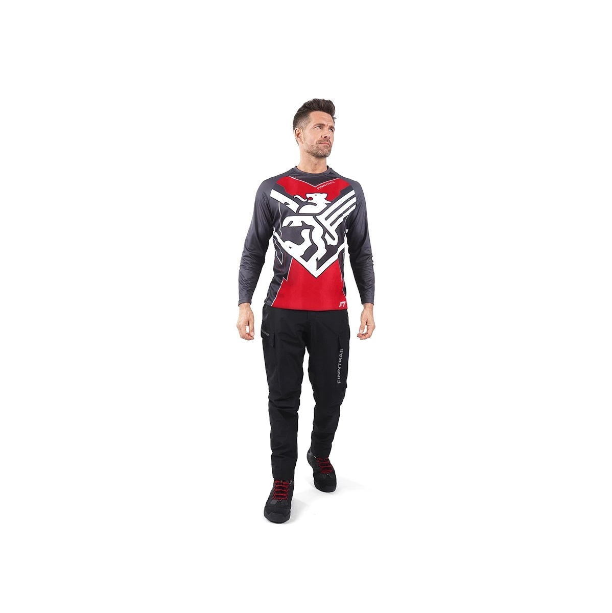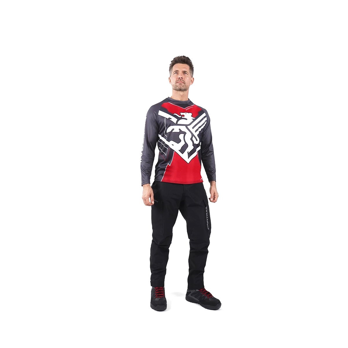 Прочный, эластичный, износостойкий материал защищает от лёгкого дождя, грязи и ветра. Функциональный дизайн модели объединяет в себе продуманные детали и тёмно-серую расцветку с красными элементами и фирменный логотип. Лонгслив хорошо тянется и не стесняет движения. Длинный рукав не ограничивает руки и плечи, позволяя совершать активные действия. Благодаря O-образному вырезу грудь полностью закрыта и не обгорает на солнце. Манжеты и воротник сконструированы таким образом, чтобы обеспечить комфорт и защиту. Легкая эластичная ткань легко снимается и надевается поверх защиты или на верхнюю одежду. Для езды на квадроцикле рекомендуется выбирать модель с вашим актуальным размером, так как в конструкции уже учтено наличие защитного слоя. В этом случае лонгслив не будет слишком обтягивать и стеснять движения.