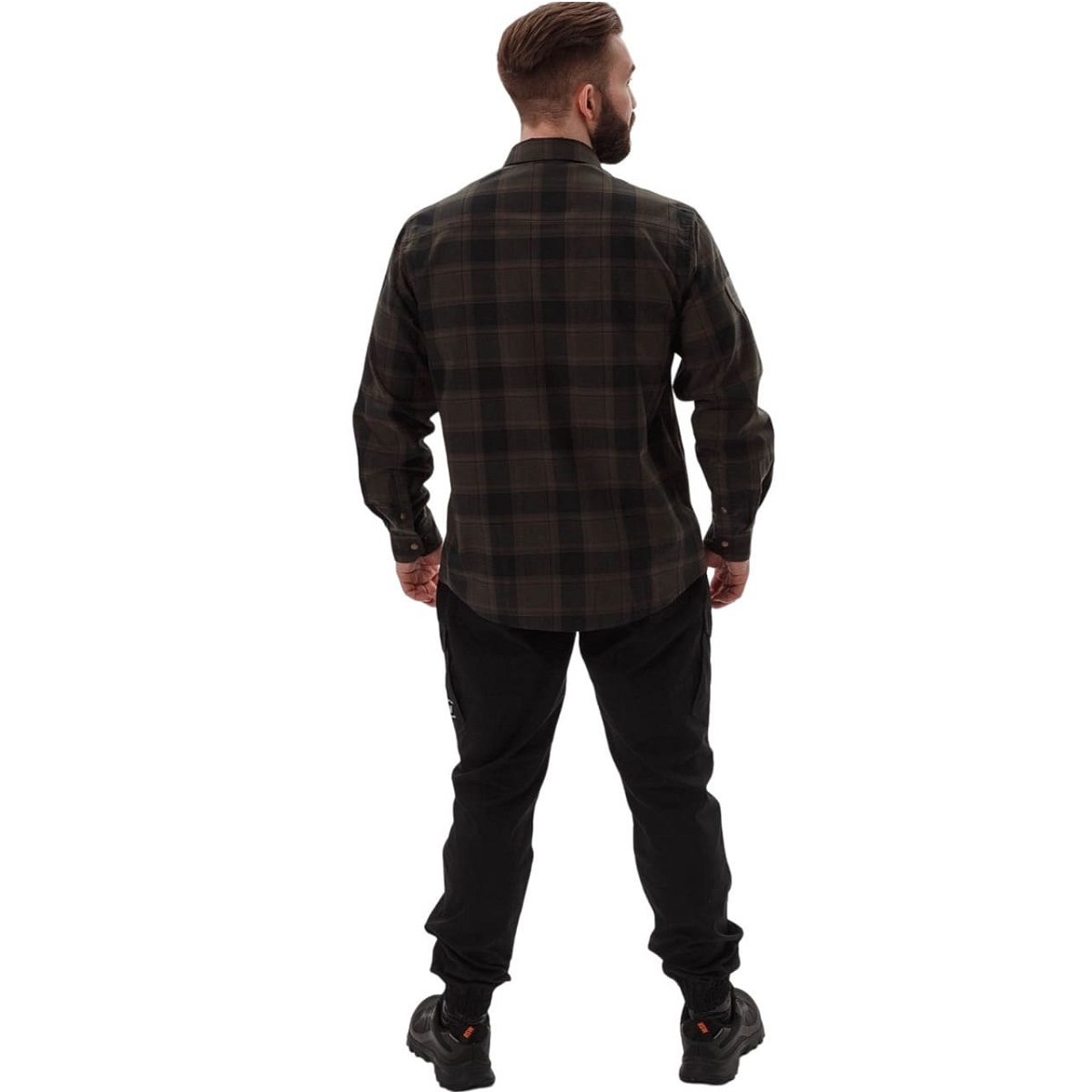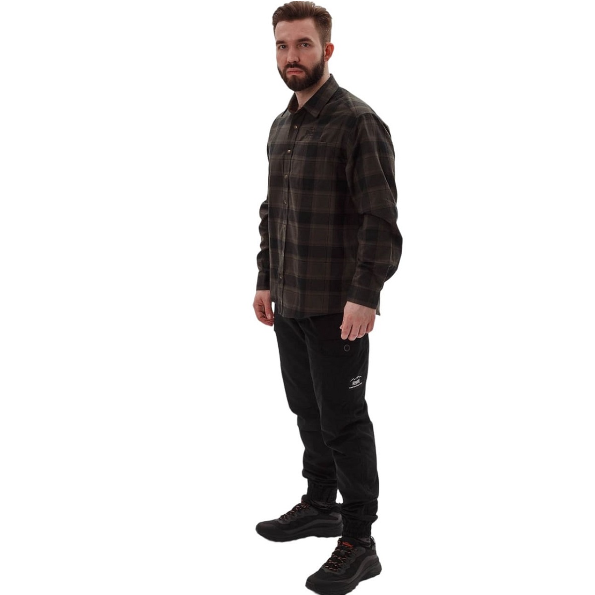 Цвет в клетку: Классическая клетка в коричнево-бежевой гамме органично вписывается в природный ландшафт, делая силуэт менее заметным на фоне деревьев, сухой травы или осенней листвы. Кроме того, клетчатый принт позволяет сочетать рубашку с одеждой разных оттенков.