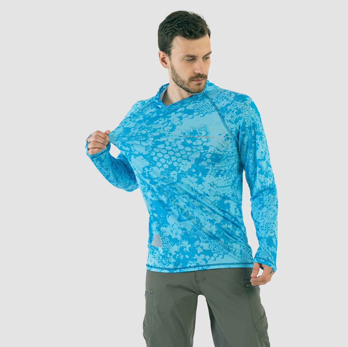 Джерси с капюшоном. Защита от ультрафиолета UPF 50+. Плоские швы. Комфортный крой изделия сохранит полную свободу ваших движений даже при самой высокой активности. Особенностями ткани является - износостойкость, гигиеничность, эластичность, а так же низкий коэффициент удержания влаги, ткань сохнет практически моментально. Благодаря низкой плотности вес изделия минимален. Шлевка под средний палец.